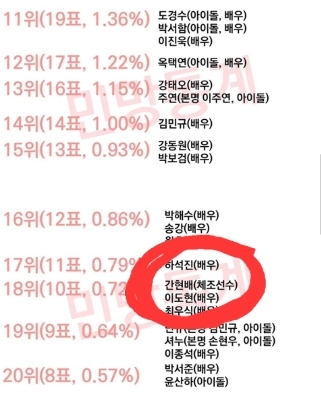 저기 저 18위의 간현배는 누구인가 궁금해짐