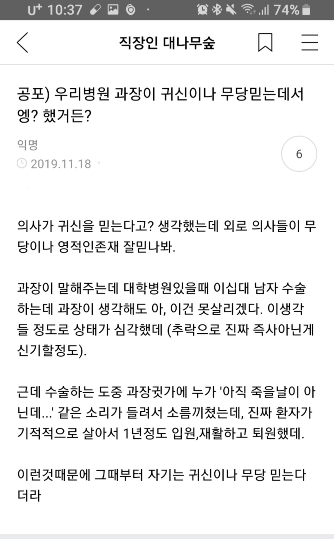 우리 병원 과장이 귀신이나 무당 믿는다고해서 엥? 했거든? pic.twitter.com/CrfXC1bdhw