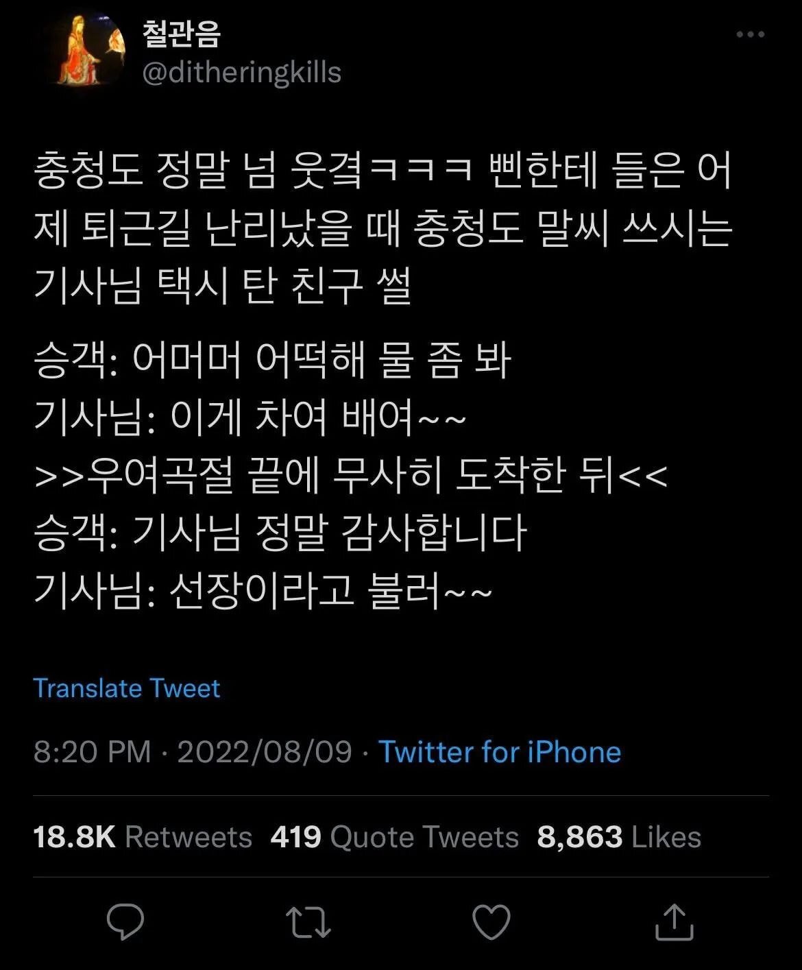 작성자HAECH_An 작성시간 22.08.14 ㅋㅋㅋㅋㅋㅋㅋㅋ나 고향 충남인디 아무리ㅜ생각해도 웃긴게 생각이 안나는겨 ㅋㅋㅋㅋㅋ근디 생각해보니