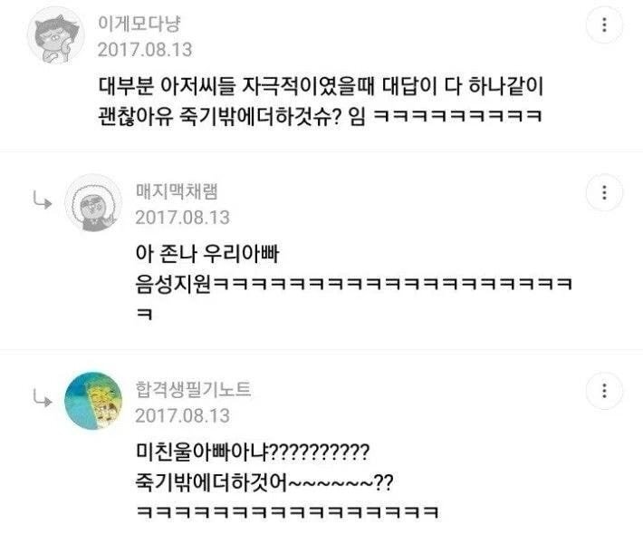 작성자윤화평 작성시간 22.08.14 ㅋㅋㅋㅋㅋㅋㅋㅋㅋㅋㅋㅋㅋㅋㅋㅋㅋㅋㅋㅋㅋㅋ 아 충청도 개웃겨
