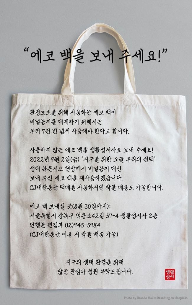 생활성서사로 사용하지 않는 에코 백을 보내 주시면,