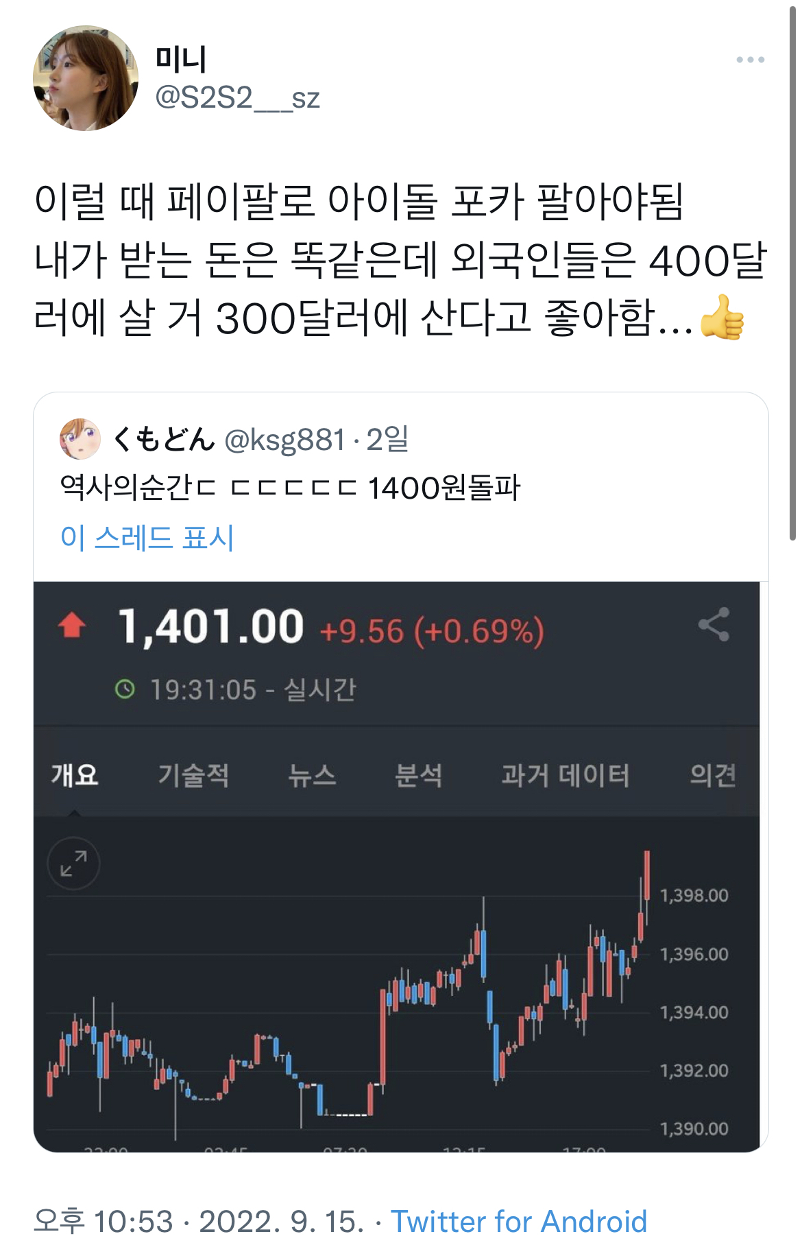 내가 받는 돈은 똑같은데 외국인들은 400달러에 살 거 300달러에 산다고 좋아함...👍 https://t.co/Y0YXAVVurO