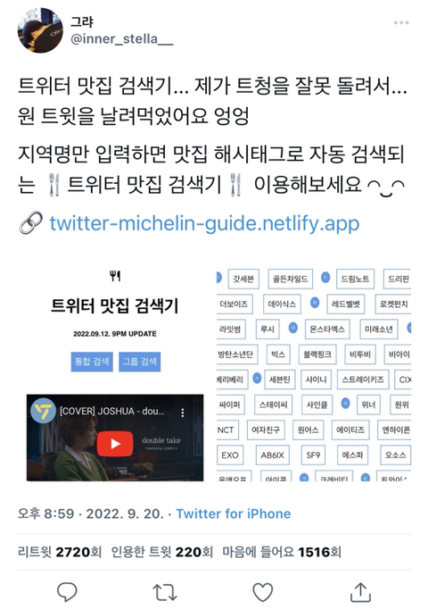 전에 올라왔었던 🍽트위터 맛집 검색기🍽