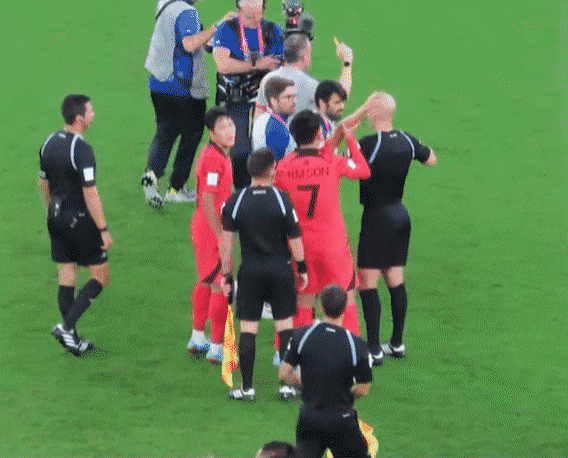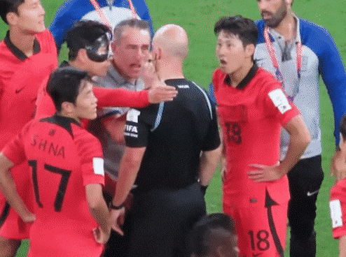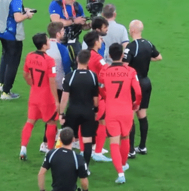 그러니깐 옆에 선수들 눈치보면서 흩어지는데 이강인이 계속 강하게 어필하니깐 손흥민이 다가가서 팔 뿌리치면서 가라고 함