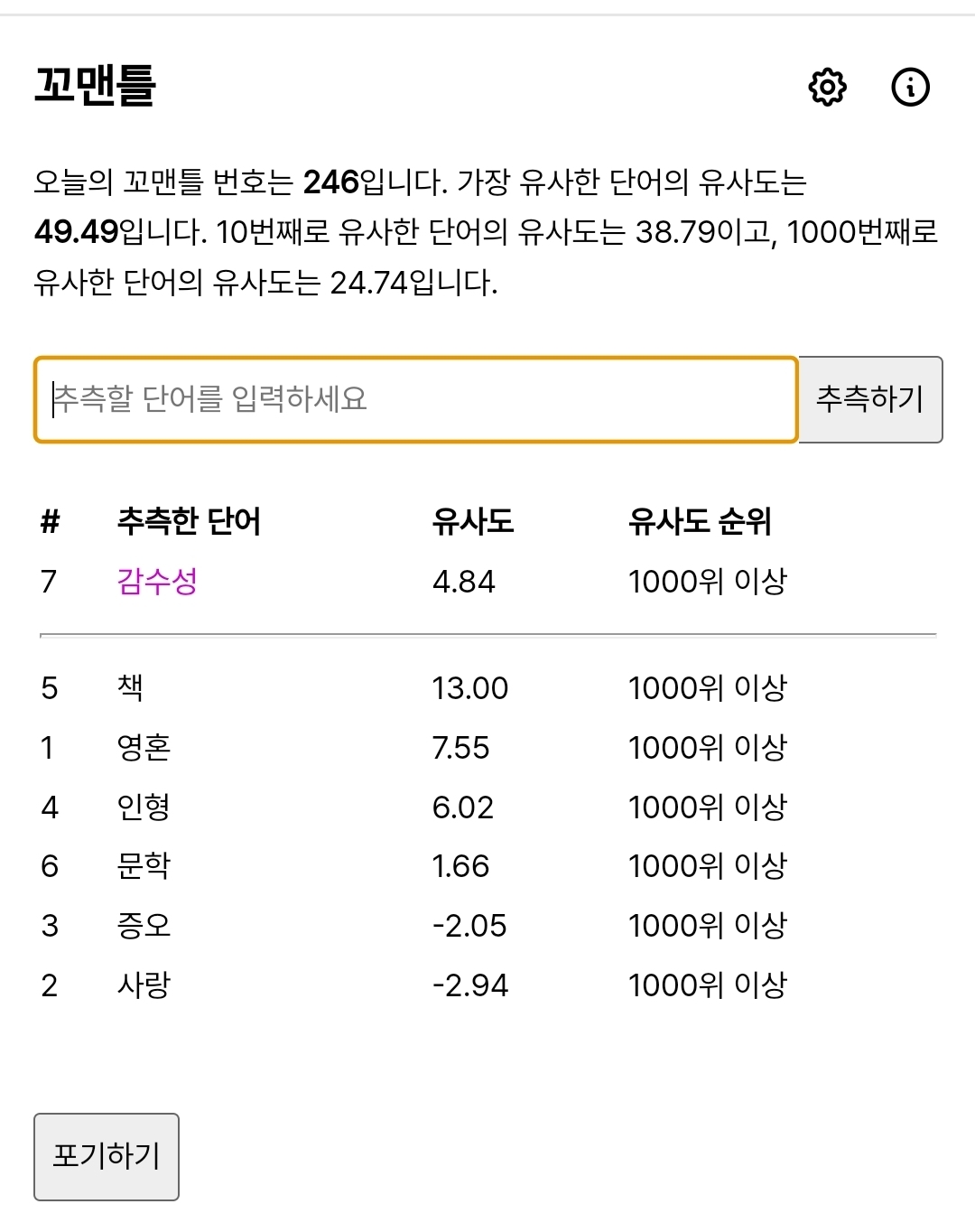 -이 게임에서 <유사한 맥락에서 사용되는 단어=유사도>