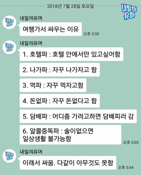 작성자내일도산다 작성시간 22.12.12 난 1,4..나도 숙소에 있는거 좋아하지만 짐 풀어둠과 동시에 여행기간내내 아무데도 안가고 티비키고 술만 먹는 경우가 있었음..