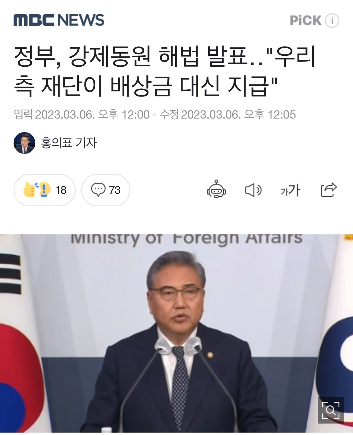 정부가 일제 강제동원 피해자들에 대해, 행정안전부 산하 기관인 '일제 강제동원 피해자 지원재단'이 배상금을 지급하는 방안을 공식 발표했습니다.