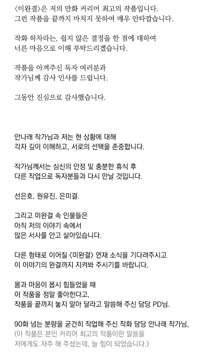 개인사정으로 작화 하차하신다는 소식..