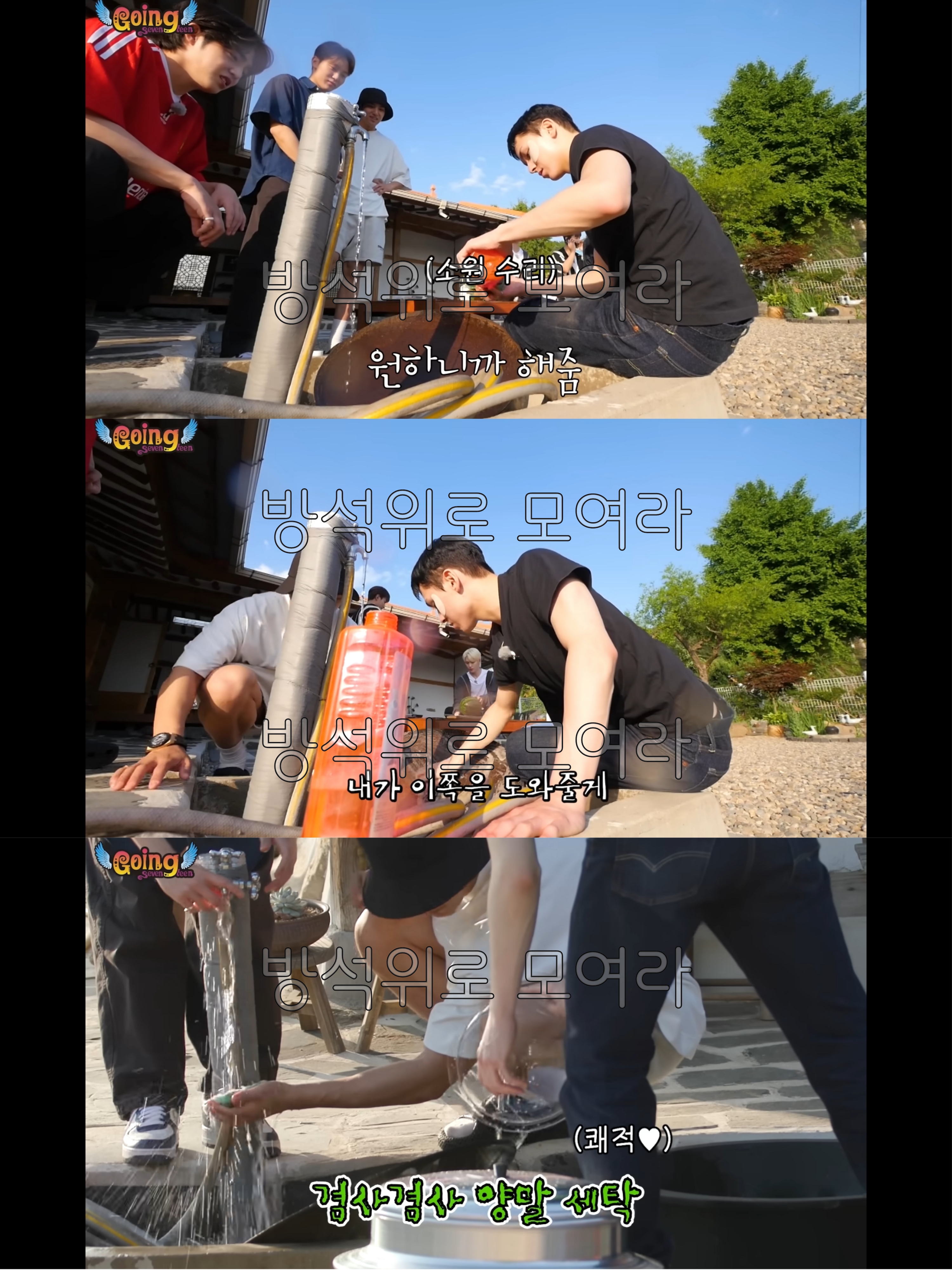 민규 형 도움받아서 설거지하다 형 더울까봐 양말에 물도 뿌려주는 버논