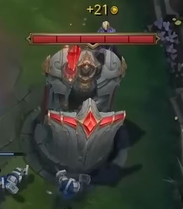 이렇게 다섯칸이 붙어있고, 포탑을 때려서 체력을 깎아 저 한칸을 달성하면 160골드를 나눠가져. 한명이면 160골드 전부 가지고, 둘이면 80골드씩 갖는 식으로.