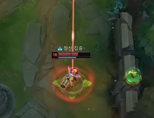 텔을 쓰면 이렇게 빛줄기가 생기면서(텔레포트를 걸어둔 타워나 와드에도 빛줄기가 생김) 몇 초간 정신 집중 상태가 되고