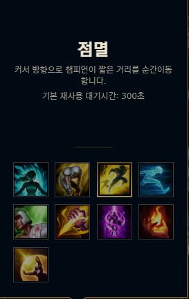 우리가 경기에서 보는 협곡에서 사용하는 스펠은 이렇게 아홉 종류가 있어.