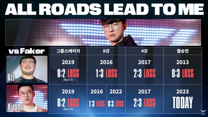 는 롤드컵에서 가능한 모든 경우의 수로 페이커에게 패배하는 바람에