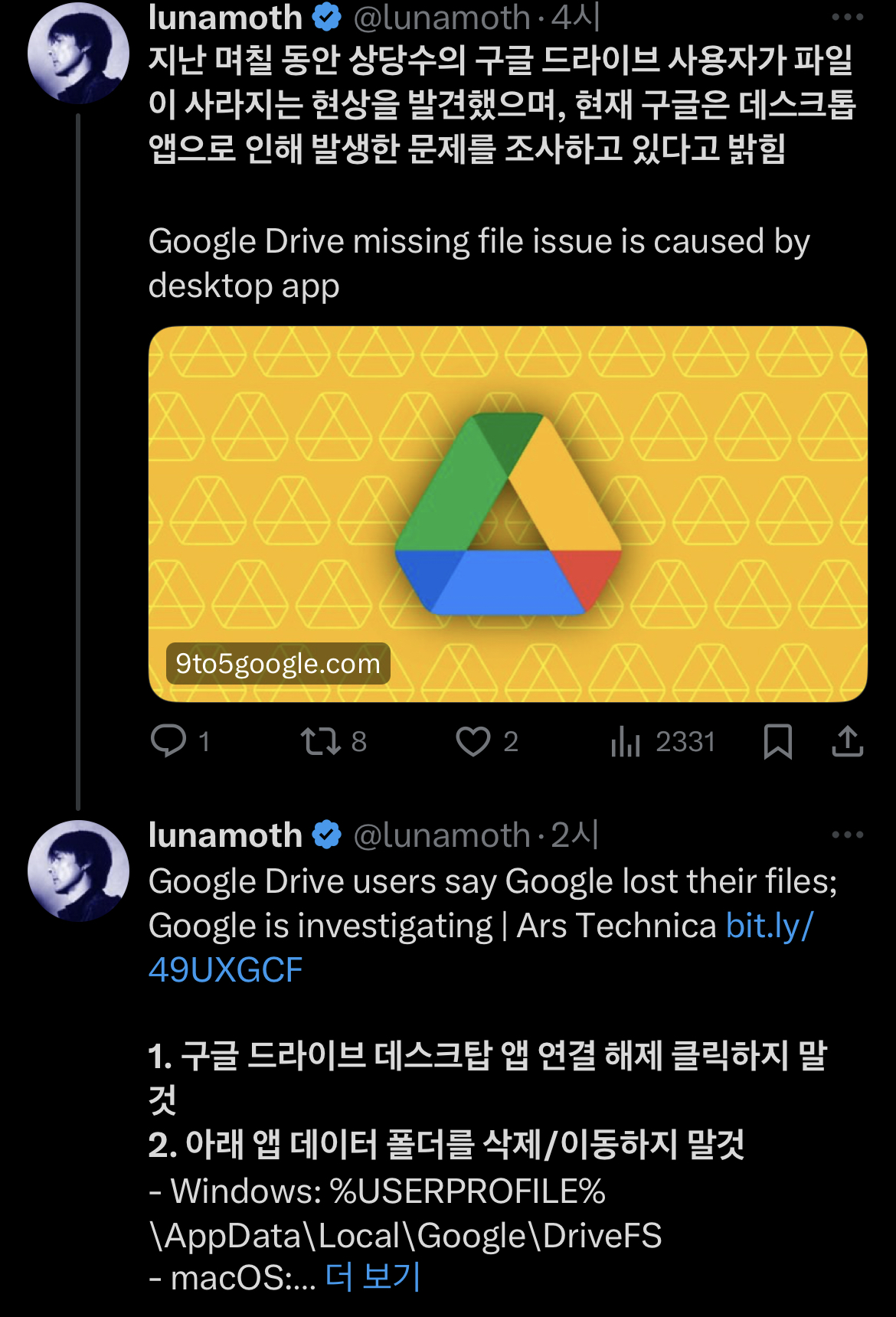 구글 드라이브 데스크톱 버전 앱 동기화 문제 발생 중, 파일도 사라짐 https://t.co/4KDgdNPszD