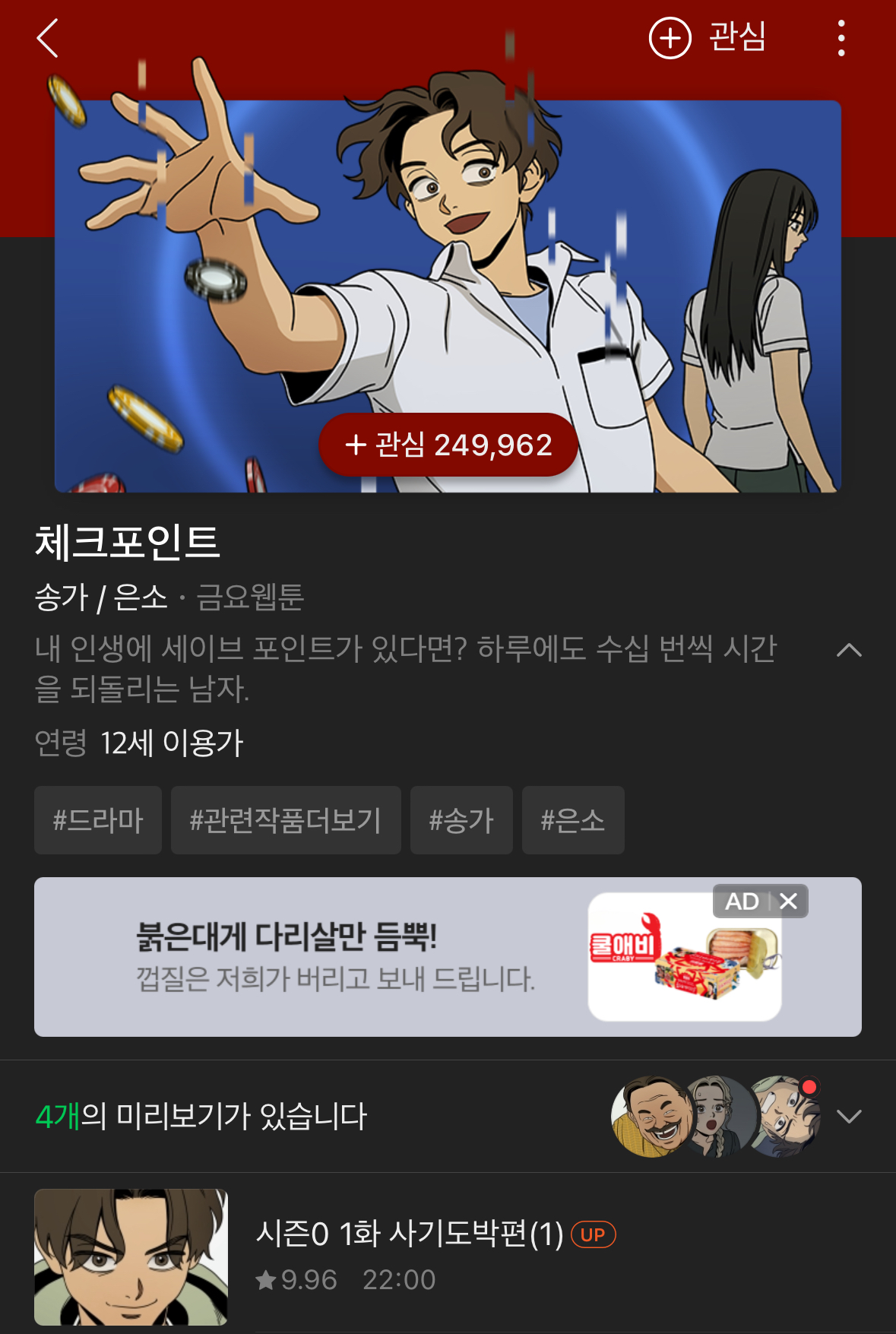 방석 위로 모여라 [만화]4년만에 휴재 끝나고 복귀한 웹툰 <체크포인트> 작성시간24.04.25|조회수3,198 목록 댓글 4 글자크기 작게가 글자크기 크게가 언제 돌아오나했는데 4년만에 돌아옴!!정주행 다 했었는데 다 잊어버려서 다시 읽어야겠음...그림체도 좀 바뀐 듯? 다음검색 현재 게시글 추가 기능 열기 북마크 공유하기 신고 센터로 신고 댓글 4 댓글 리스트 작성시간 24.04.25 4년 와.. 작성시간 24.04.25 헐 4년???? 작성시간 24.04.25 와 드디어!!! 이거 재미있는데 작성시간 24.04.26 아 이거 보고 웹툰 켰다가 지금까지 정주행했네 ,, ㅋㅋㅋㅋㅋㅋㅋㅋ ㅋㅋㅋㅋㅋㅋ 아 카페 방문해 더 많은 댓글 만나기!