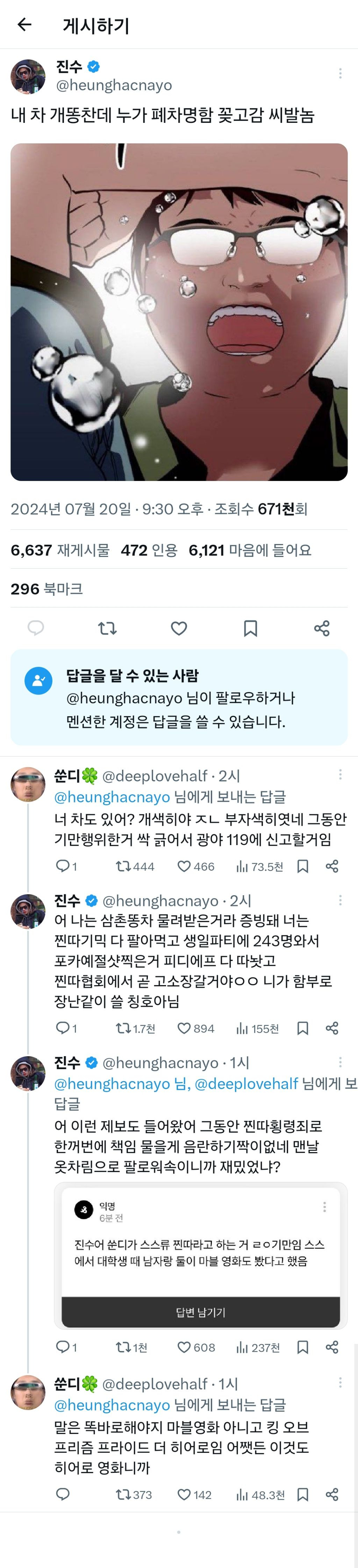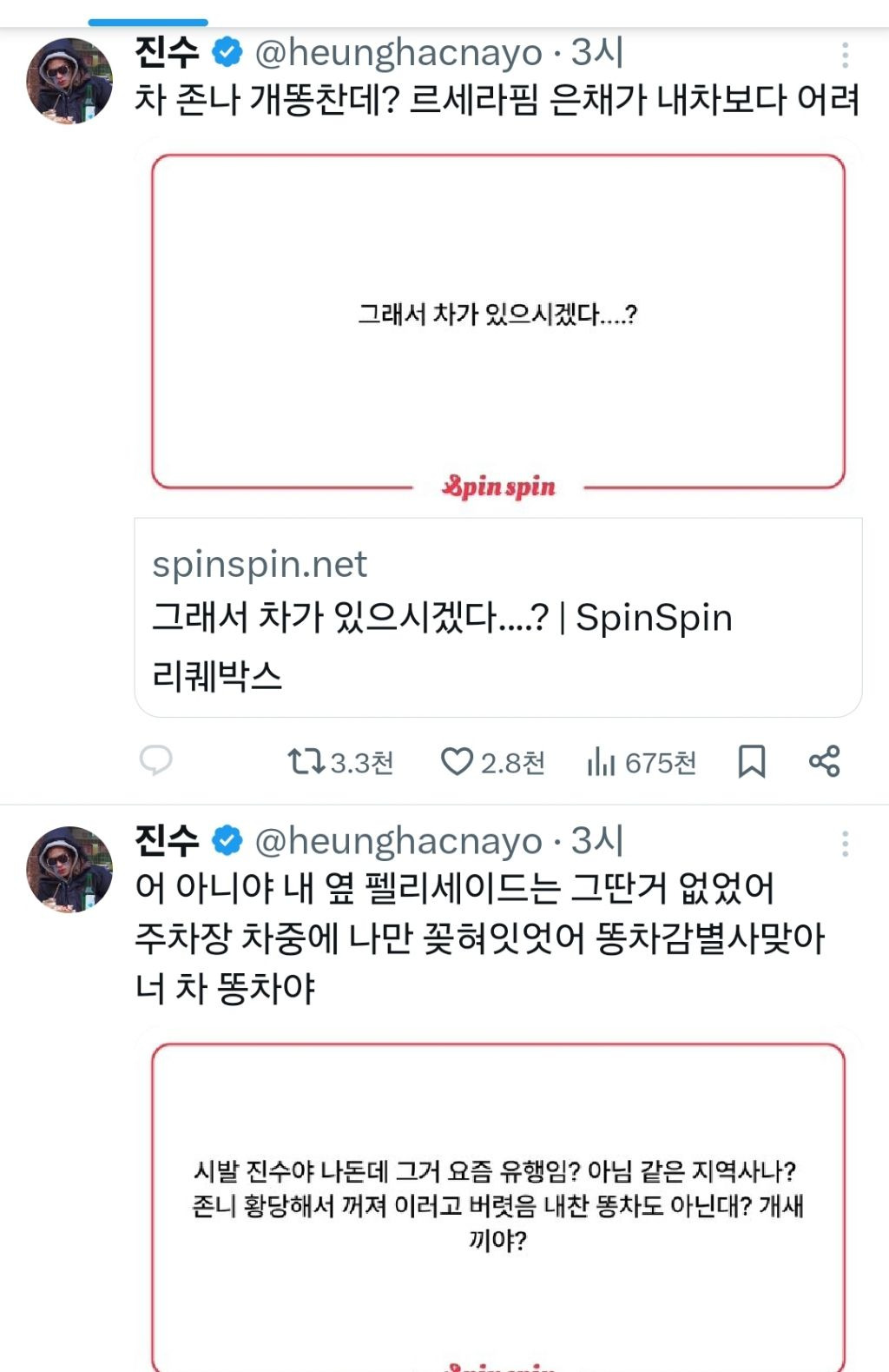 [유머]진수 vs 쑨디 ㄷㄷㄷ 작성자도망숑숑|작성시간24.07.21|조회수5,213 목록 댓글 29 글자크기 작게가 글자크기 크게가 ㄷㄷㄷㄷㄷ+ 다음검색 현재 게시글 추가 기능 열기 북마크 공유하기 신고 센터로 신고 댓글 댓글 29 댓글쓰기 답글쓰기 댓글 리스트 작성자큥떡말랑강쥐 | 작성시간 24.07.21 마지막 ㅅㅂ ㅠ 작성자현실 | 작성시간 24.07.21 ㅋㅋㅋㅋㅋㅋㅋㅋㅋㅋㅋㅋㅋ 네임드 아무나 하는 거 아니구나 작성자재찬 | 작성시간 24.07.21 둘다 말하는거 ㅈㄴ윳겨 ㅠ아 ㅋㅋㅋㅋㅋㅋ 작성자NCT_젠 | 작성시간 24.07.22 그냥 둘다 인생이 하이킥 같음ㅋㅋㅋ 작성자stillnot | 작성시간 24.07.22 하 ㅈㄴㄴㅇ웃겨 댓글 전체보기