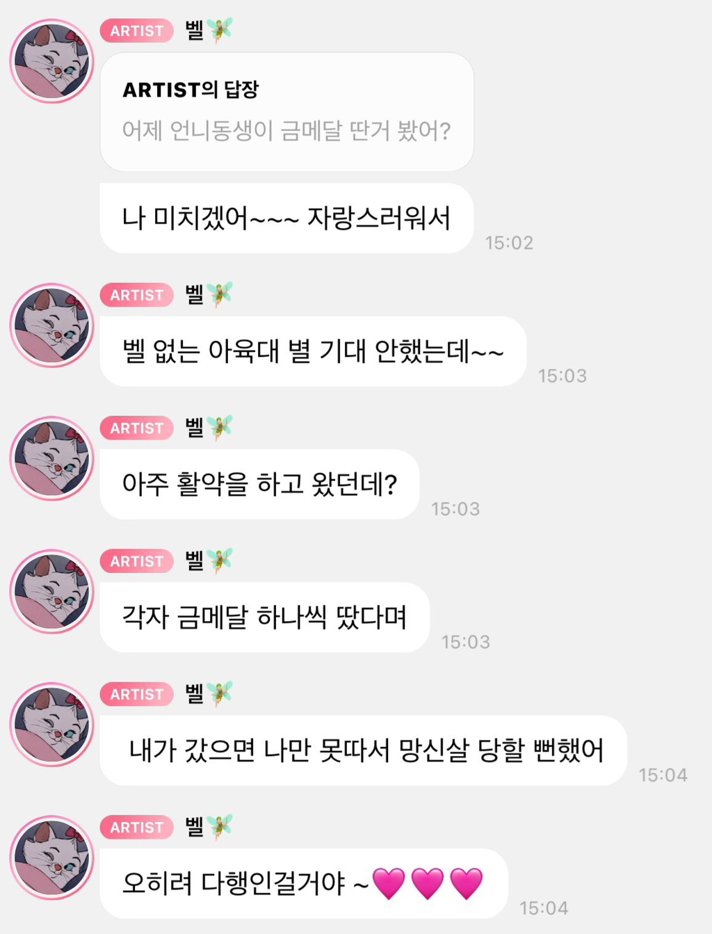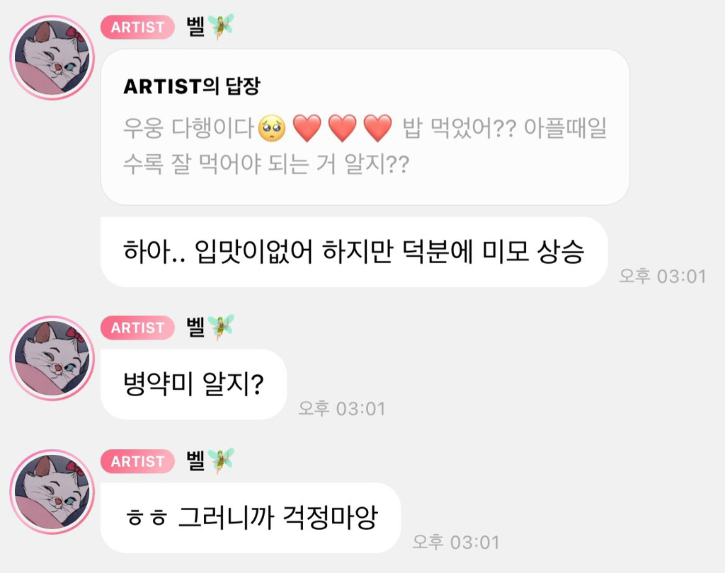 [유머]이번 아육대 불참한 키스오브라이프 벨 버블.jpg 작성자f(x) 크리스탈|작성시간24.08.06|조회수3,686 목록 댓글 14 글자크기 작게가 글자크기 크게가 감기몸살로 아육대 불참한 벨걱정한 팬들에게 버블로 자기 걱정말라구덕분에 미모 상승병약미 알지?벨 공주님은 못말려ㅋㅋㅋㅋㅋㅋㅋㄷㅋㅍ https://theqoo.net/square/3351122433 다음검색 현재 게시글 추가 기능 열기 북마크 공유하기 신고 센터로 신고 댓글 댓글 14 댓글쓰기 답글쓰기 댓글 리스트 작성자포도쿵야 | 작성시간 24.08.07 진짜 아기 천송이 그 자체야ㅋㅋㅋㅋㅋㅋㅋㅋㅋㅋㅋ ㄱㅇㅇ 작성자피터 파커 | 작성시간 24.08.07 진짜 넘 귀여움.... 작성자청춘의 포말 | 작성시간 24.08.07 공주님 못말려 절대 아프지말길 ㅠㅠㅠㅠㅠㅠ 작성자문샹훈 | 작성시간 24.08.07 ㅋㅋㅋㅋ천송이 ㅜㅜㅜ 작성자Bye my monster | 작성시간 24.08.07 ㅋㅋㅋㅋㅋㅋㅋ아기 천송이 아프지마 댓글 전체보기