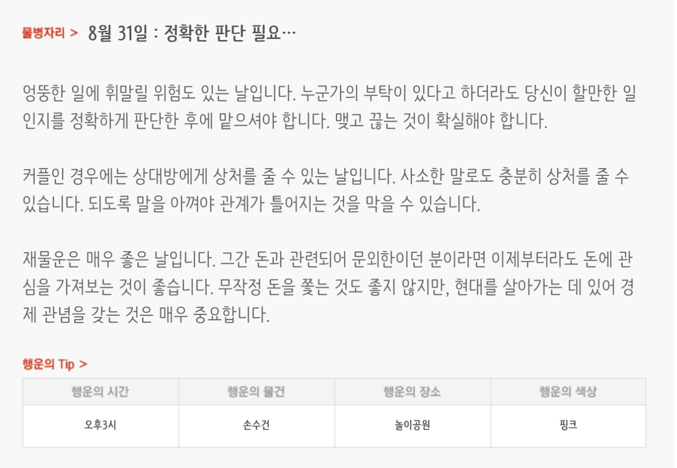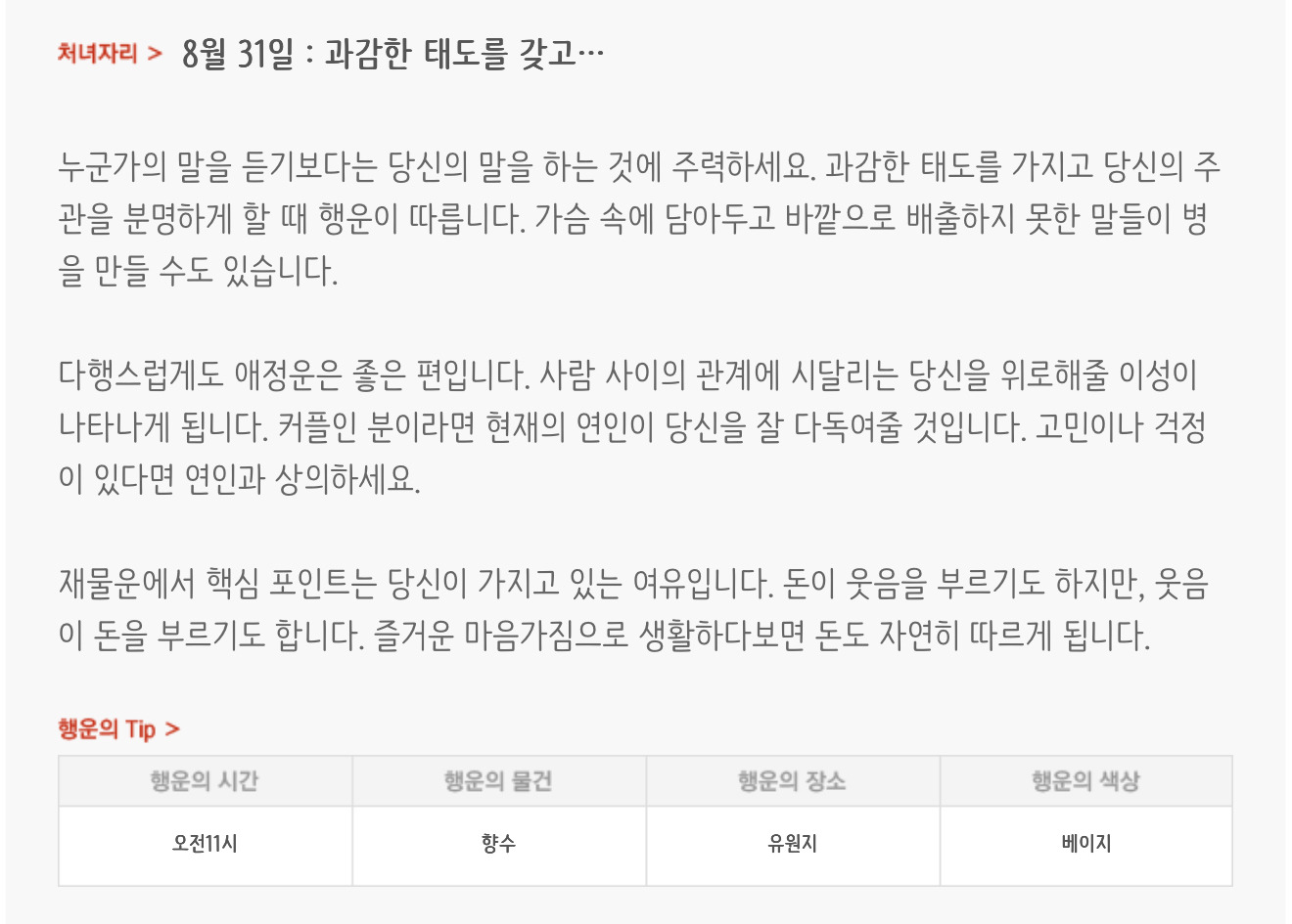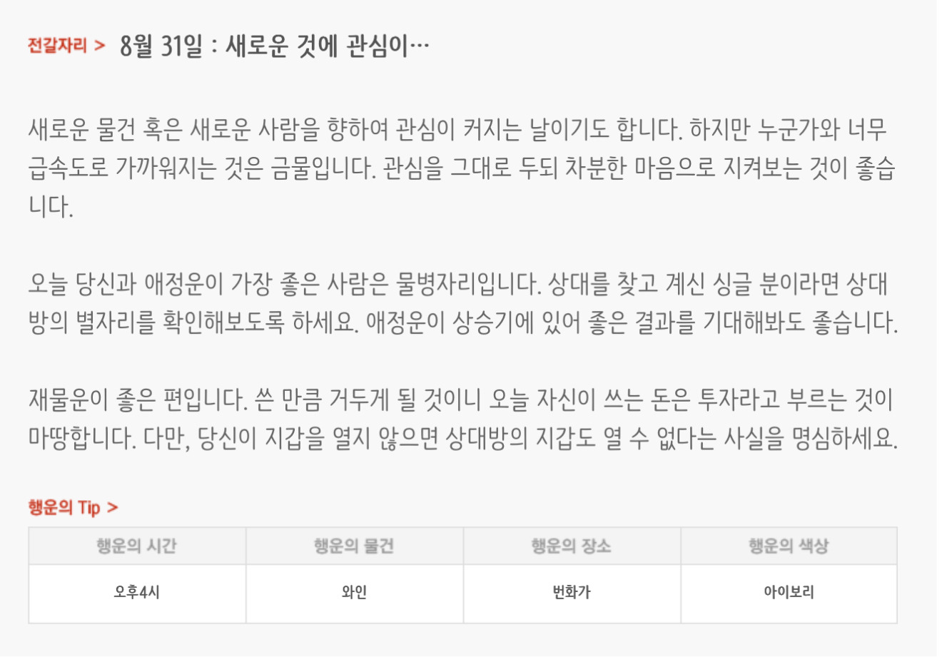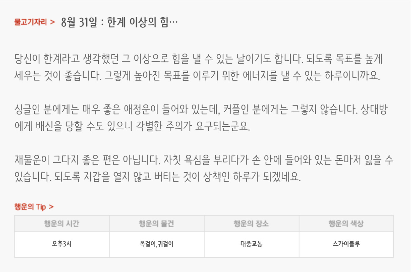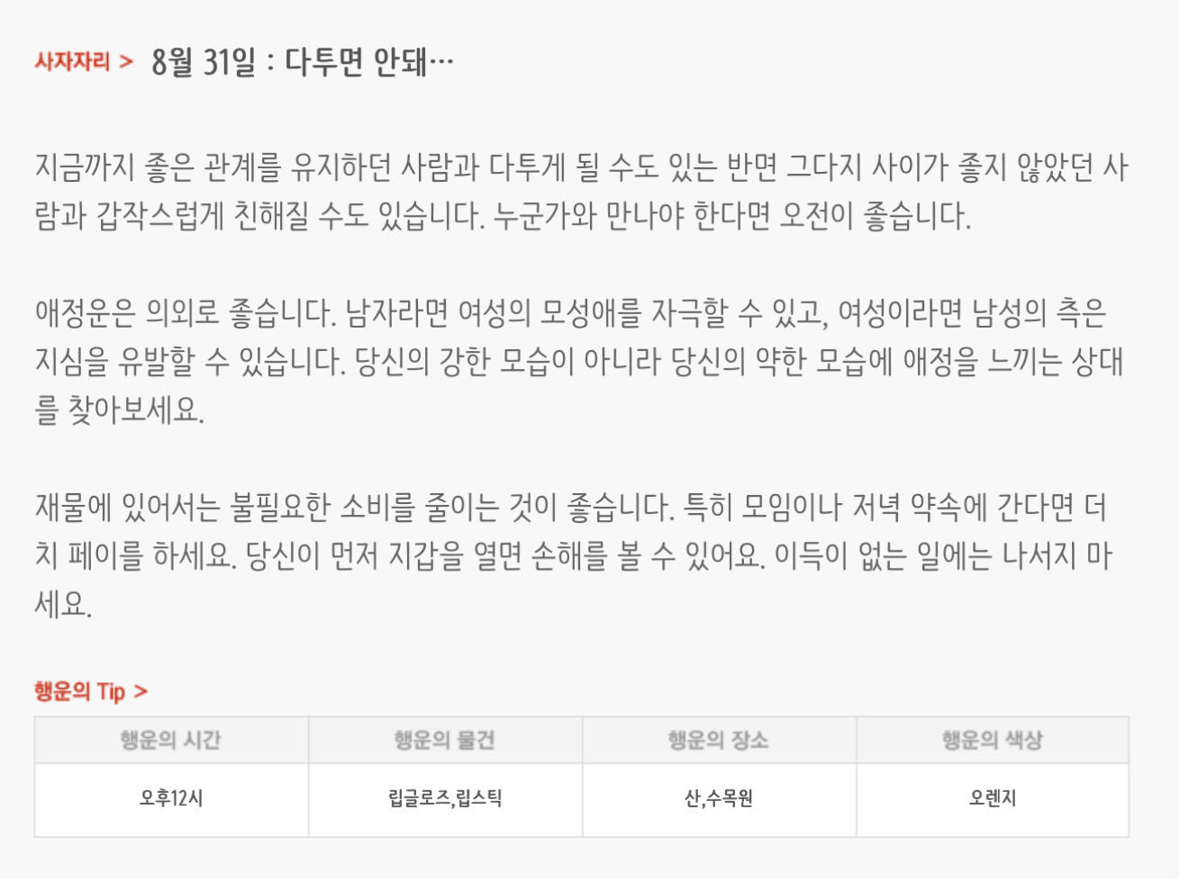 방석 위로 모여라 [기타]하루전에 미리보는 8월 31일 별자리운세 작성시간25.08.30|조회수3,847 목록 댓글 22 글자크기 작게가 글자크기 크게가 출처 : 산수도인 다음검색 현재 게시글 추가 기능 열기 북마크 공유하기 신고 센터로 신고 댓글 22 댓글 리스트 작성시간 25.08.30 복채 작성시간 25.08.31 복채 작성시간 25.08.31 복채 작성시간 25.08.31 복채 작성시간 25.08.31 복채 카페 방문해 더 많은 댓글 만나기!