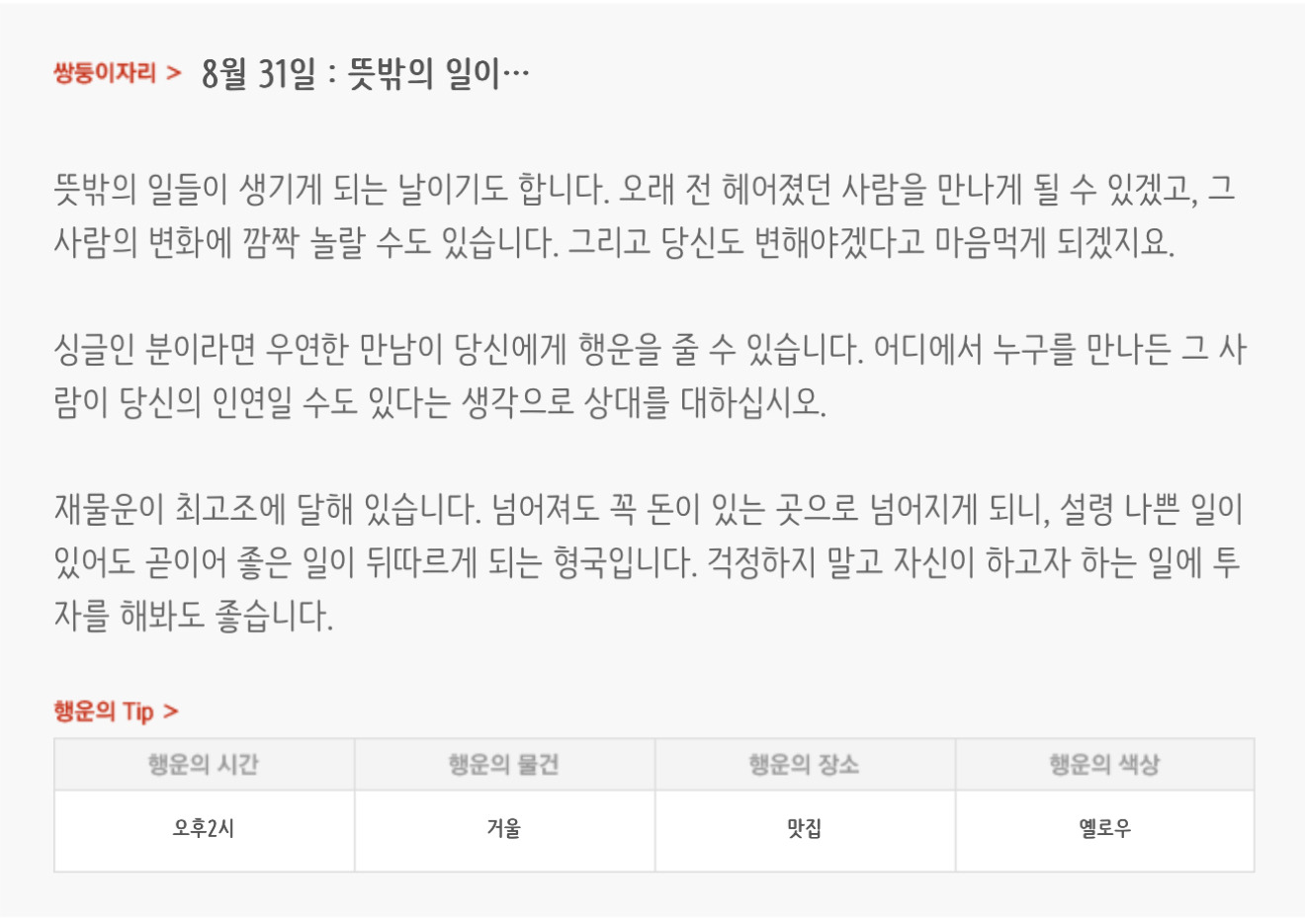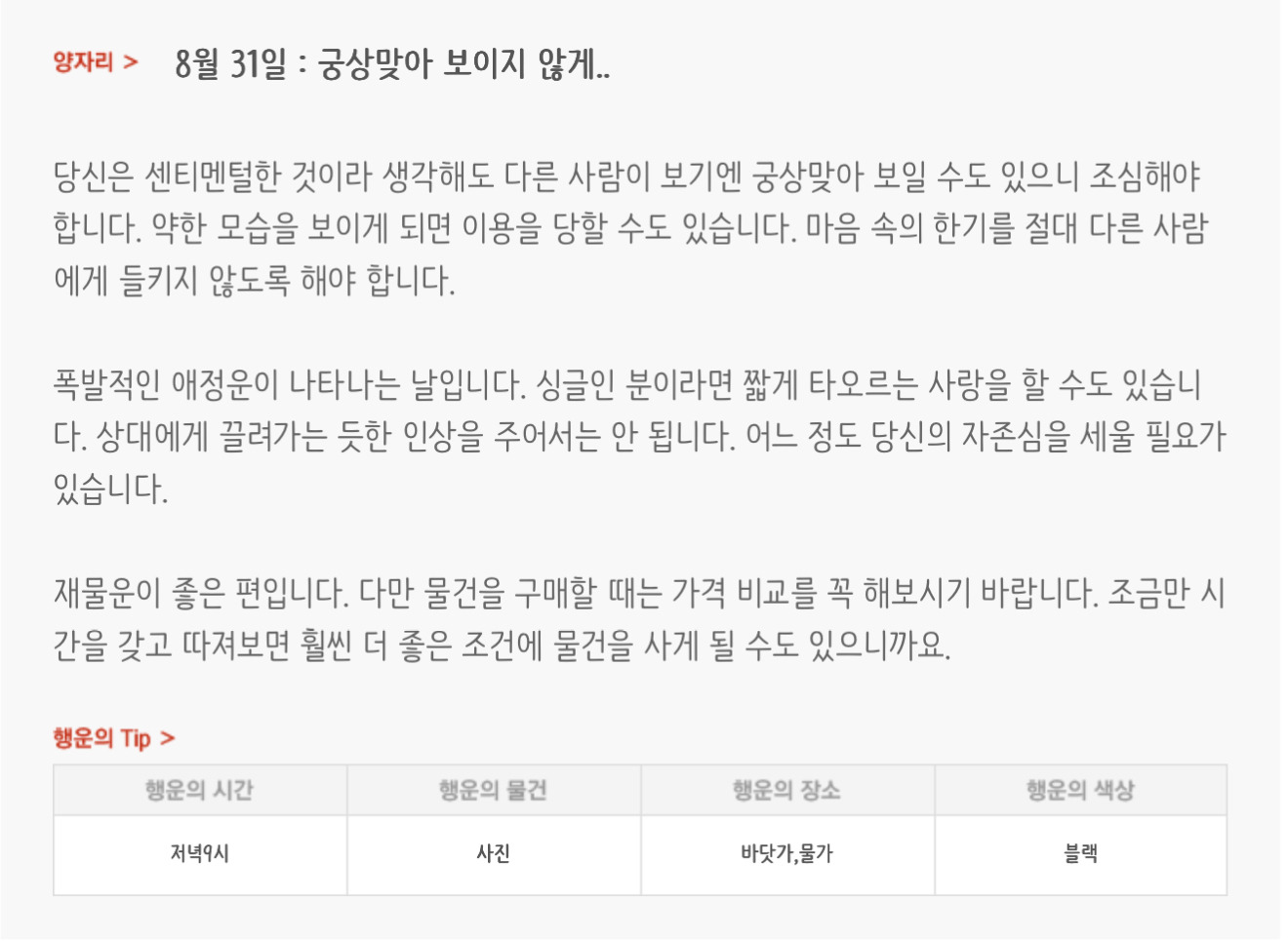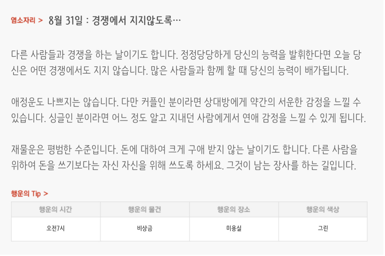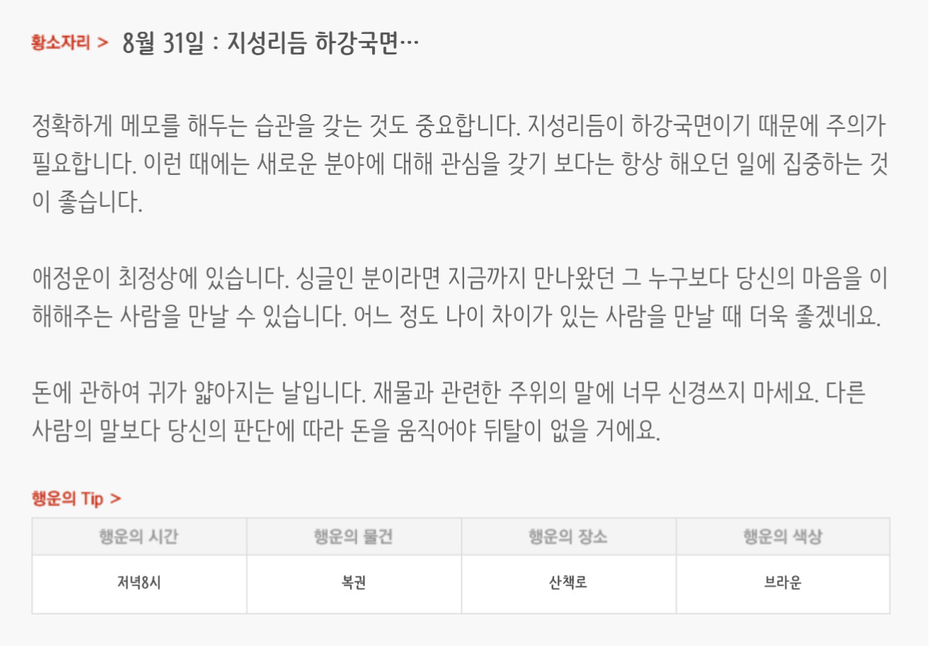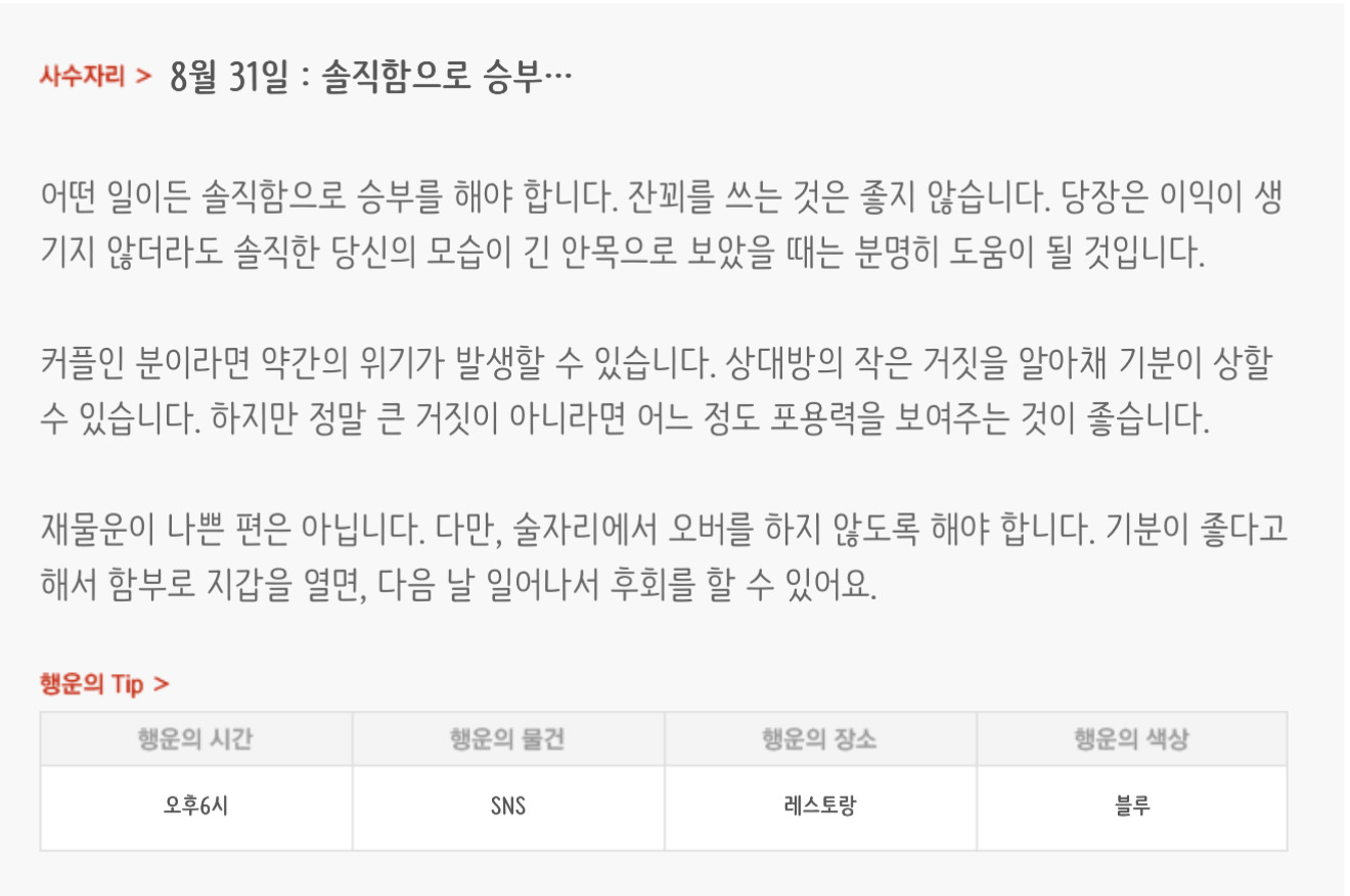 방석 위로 모여라 [기타]하루전에 미리보는 8월 31일 별자리운세 작성시간25.08.30|조회수3,847 목록 댓글 22 글자크기 작게가 글자크기 크게가 출처 : 산수도인 다음검색 현재 게시글 추가 기능 열기 북마크 공유하기 신고 센터로 신고 댓글 22 댓글 리스트 작성시간 25.08.30 복채 작성시간 25.08.31 복채 작성시간 25.08.31 복채 작성시간 25.08.31 복채 작성시간 25.08.31 복채 카페 방문해 더 많은 댓글 만나기!