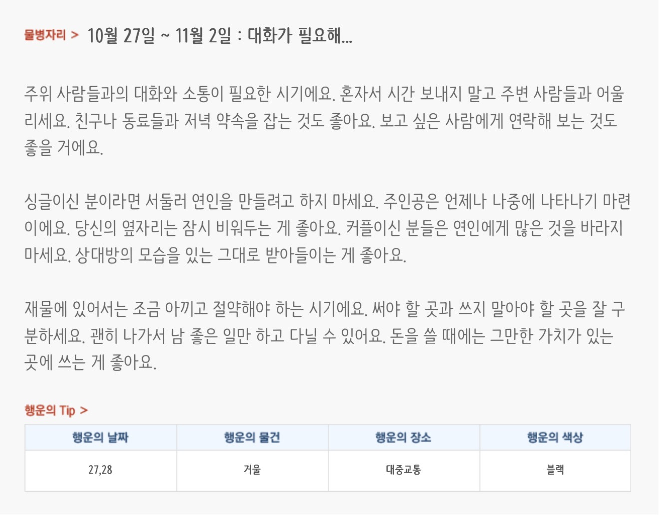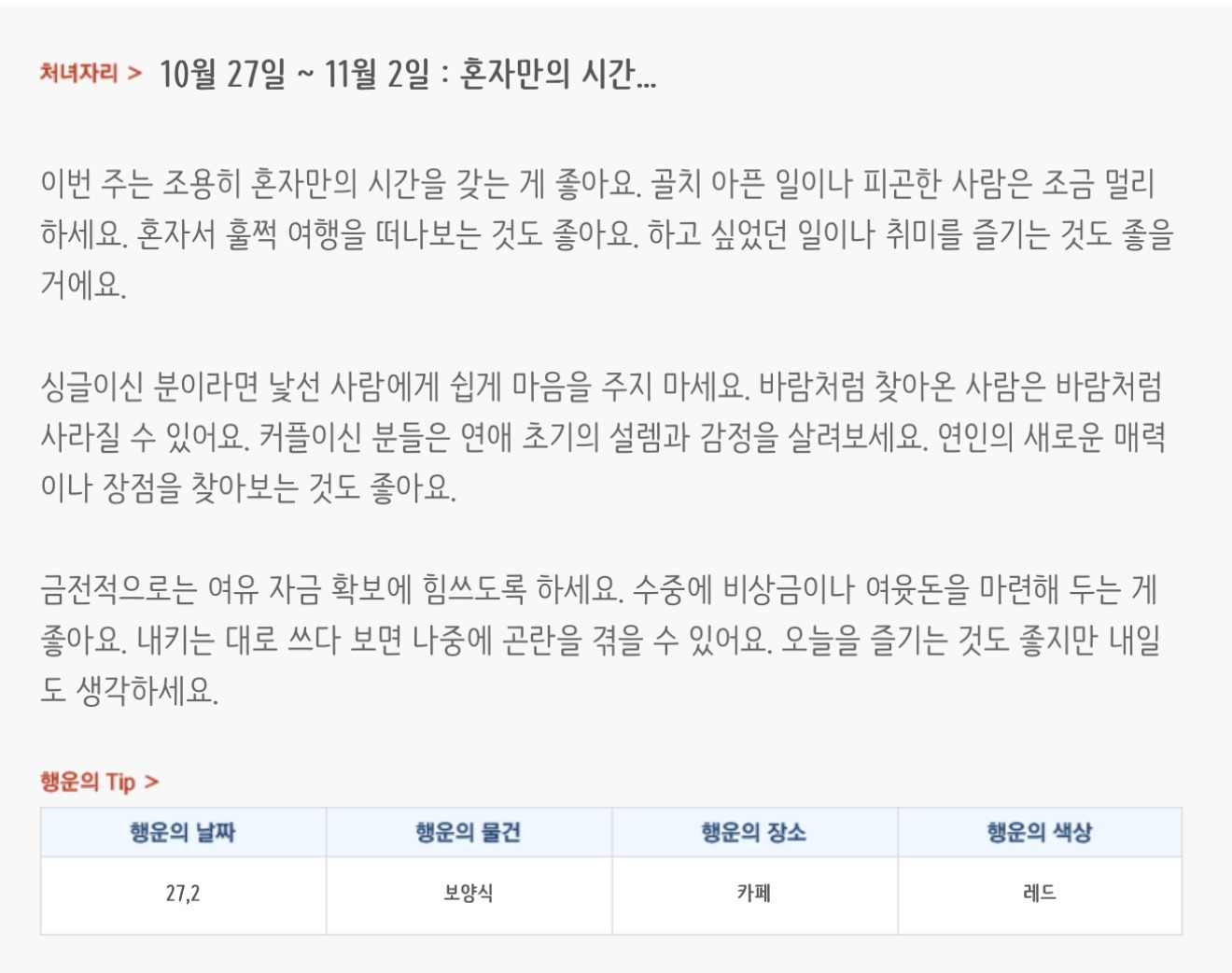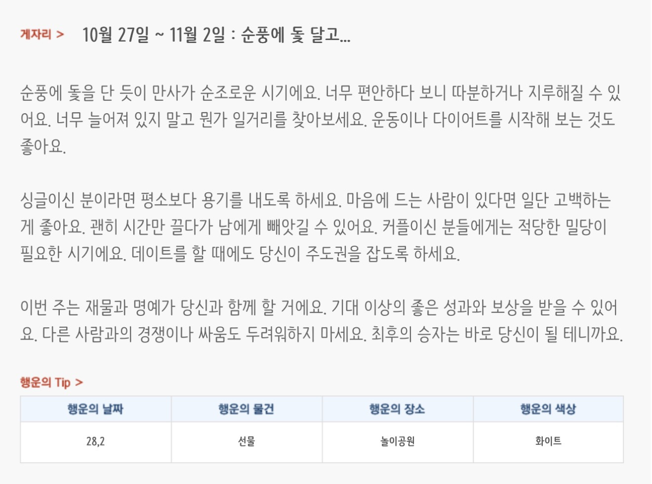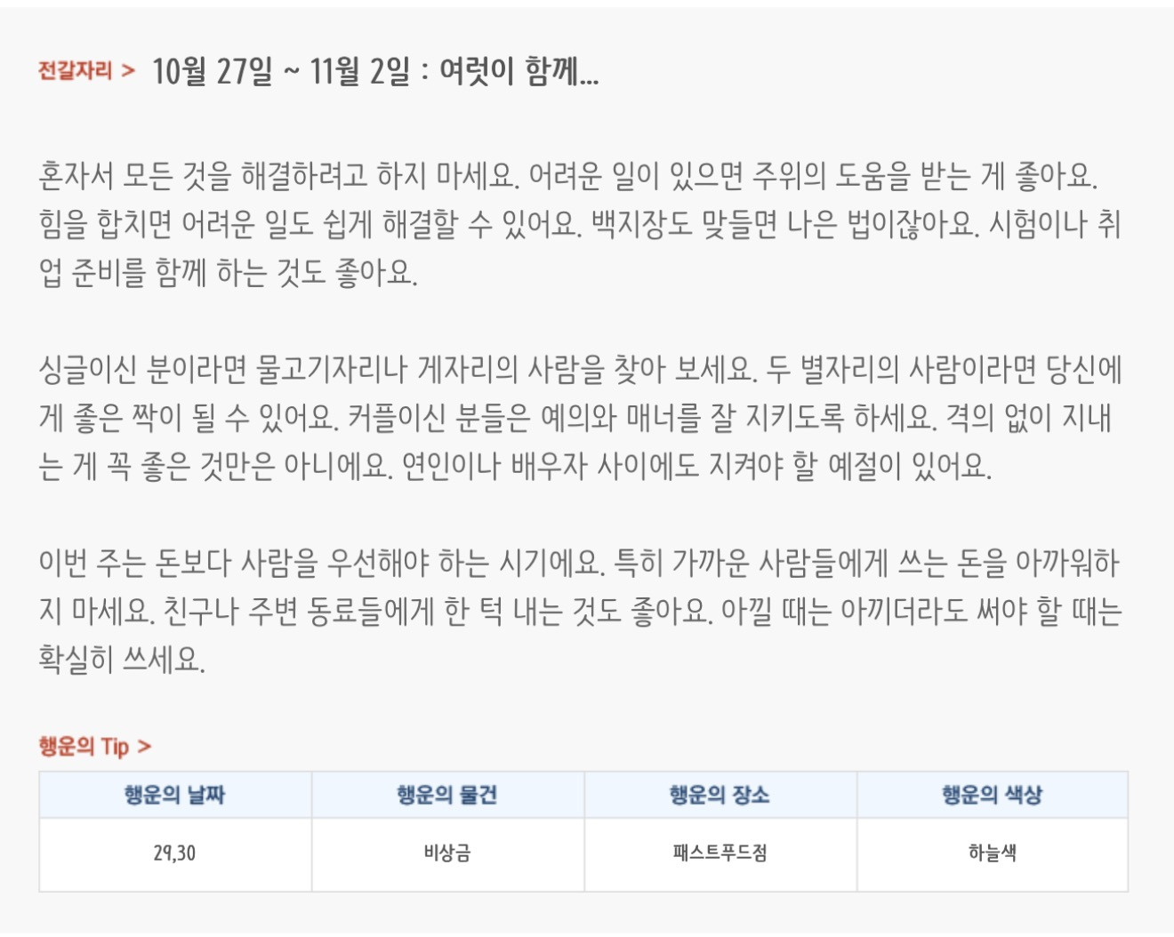 [기타]미리보는 10월 마지막주 별자리운세 작성자앰퍼샌드원|작성시간25.10.26|조회수4,203 목록 댓글 43 글자크기 작게가 글자크기 크게가 방석 위로 모여라출처 : 산수도인 다음검색 현재 게시글 추가 기능 열기 북마크 공유하기 신고 센터로 신고 댓글 댓글 43 댓글쓰기 답글쓰기 댓글 리스트 작성자뭉뿡빵 | 작성시간 25.10.27 복채 작성자waterfire | 작성시간 25.10.27 복채 작성자Savior | 작성시간 25.10.27 복채 작성자다시 처음 | 작성시간 25.10.27 복채 작성자cheer | 작성시간 25.10.29 복채 댓글 전체보기
