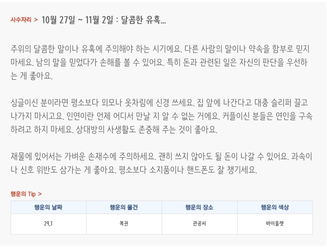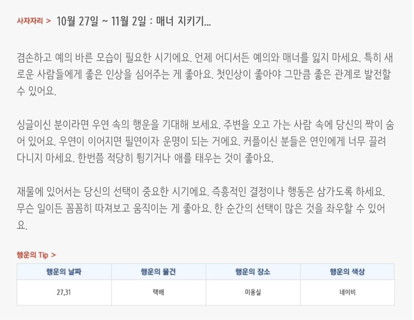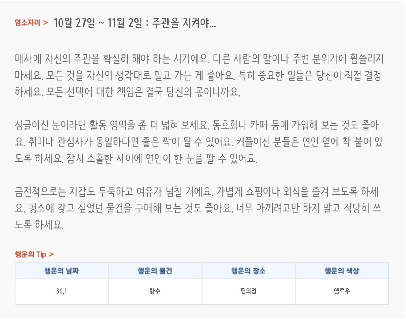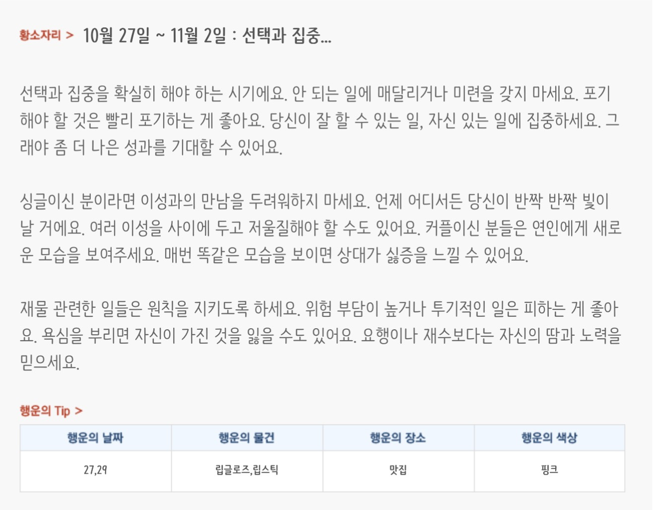 [기타]미리보는 10월 마지막주 별자리운세 작성자앰퍼샌드원|작성시간25.10.26|조회수4,203 목록 댓글 43 글자크기 작게가 글자크기 크게가 방석 위로 모여라출처 : 산수도인 다음검색 현재 게시글 추가 기능 열기 북마크 공유하기 신고 센터로 신고 댓글 댓글 43 댓글쓰기 답글쓰기 댓글 리스트 작성자뭉뿡빵 | 작성시간 25.10.27 복채 작성자waterfire | 작성시간 25.10.27 복채 작성자Savior | 작성시간 25.10.27 복채 작성자다시 처음 | 작성시간 25.10.27 복채 작성자cheer | 작성시간 25.10.29 복채 댓글 전체보기