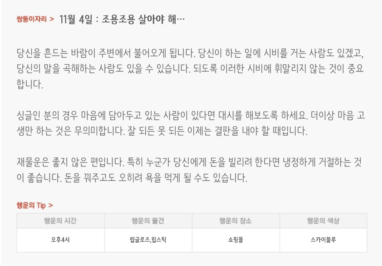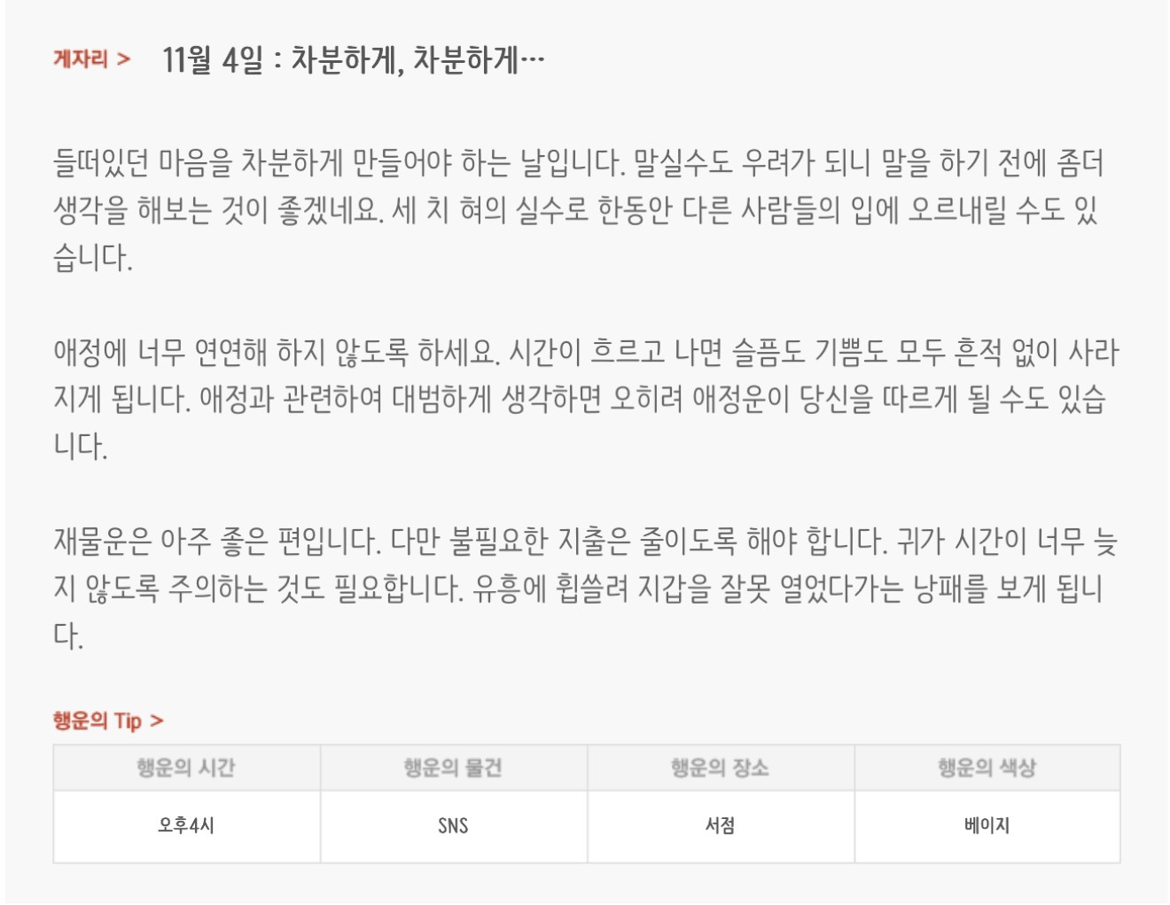 [기타]하루전에 미리보는 11월 4일 별자리운세 작성자앰퍼샌드원|작성시간25.11.03|조회수2,638 목록 댓글 36 글자크기 작게가 글자크기 크게가 방석 위로 모여라출처 : 산수도인 다음검색 현재 게시글 추가 기능 열기 북마크 공유하기 신고 센터로 신고 댓글 댓글 36 댓글쓰기 답글쓰기 댓글 리스트 작성자해윰 | 작성시간 25.11.04 복채 작성자nct dream RENJUN | 작성시간 25.11.04 복채 작성자달치즈 | 작성시간 25.11.04 복채 작성자개미지옥 | 작성시간 25.11.04 복채 작성자NCT127 Mark Lee | 작성시간 25.11.04 복채 댓글 전체보기