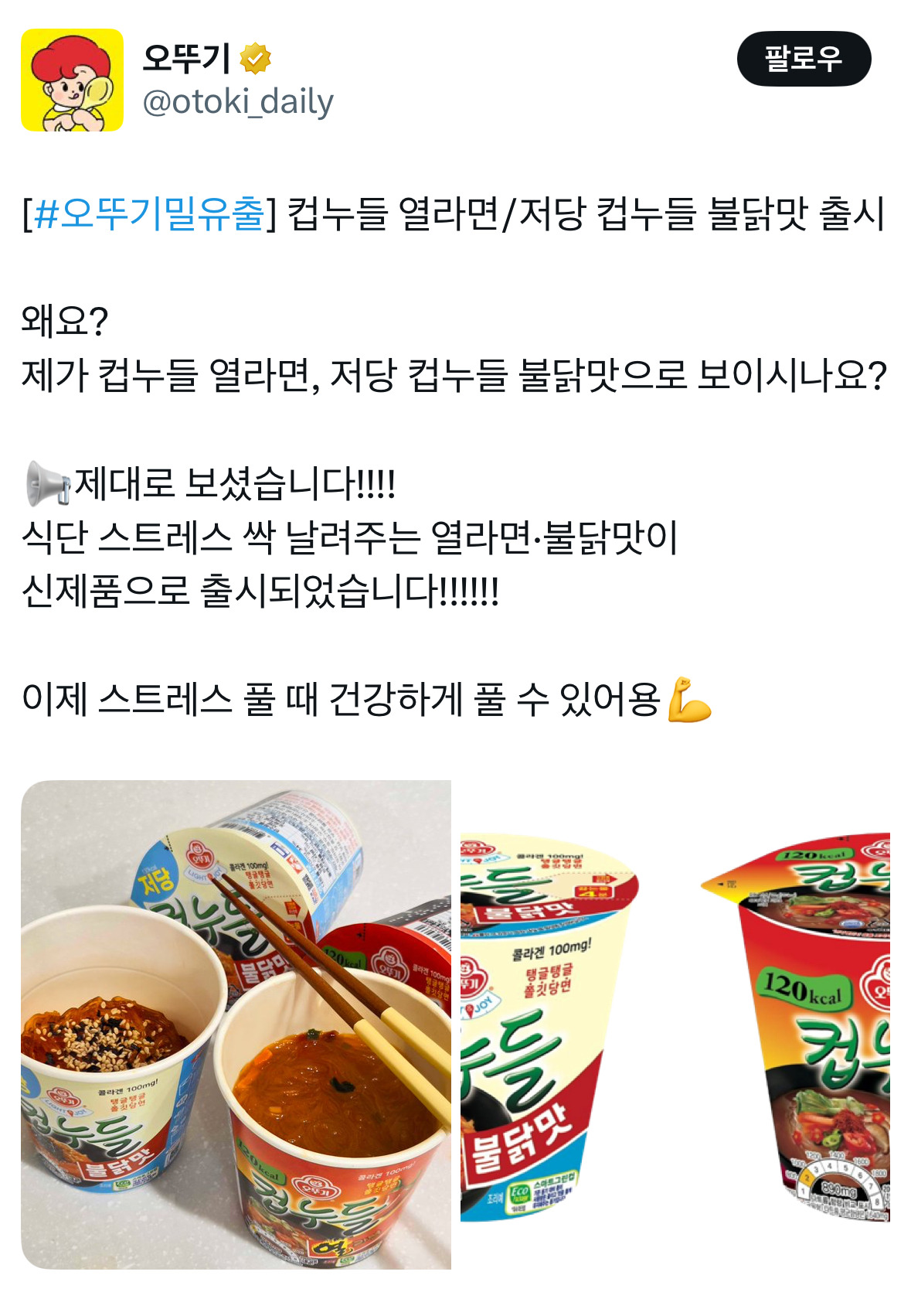 [음식]컵누들 열라면/저당 컵누들 불닭맛 출시 작성자해윤|작성시간25.11.07|조회수5,455 목록 댓글 8 글자크기 작게가 글자크기 크게가 방석 위로 모여라 해윤https://x.com/otoki_daily/status/1986682847927935219?s=46뭔가 맛있을 것 같음😋 다음검색 현재 게시글 추가 기능 열기 북마크 공유하기 신고 센터로 신고 댓글 댓글 8 댓글쓰기 답글쓰기 댓글 리스트 작성자내인생정상영업 | 작성시간 25.11.07 와 미친 작성자Take All My Heart | 작성시간 25.11.07 ㅁㅊ 작성자내가그린가다니 | 작성시간 25.11.07 미친 열라면 드루와 작성자성찬 | 작성시간 25.11.07 열라면 ㅁㅊ 작성자바다로 돌아가요 | 작성시간 25.11.09 와 댓글 전체보기