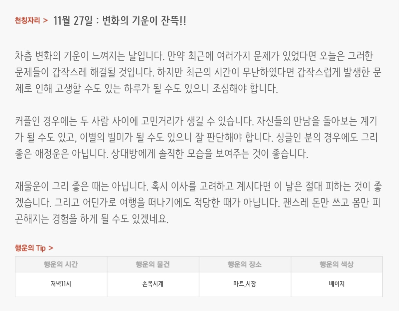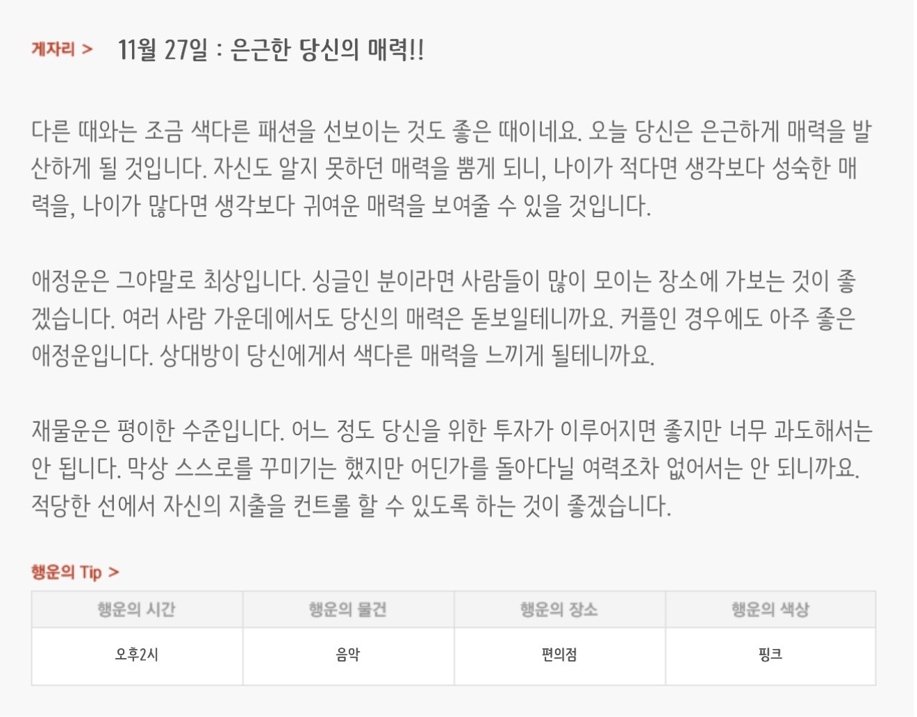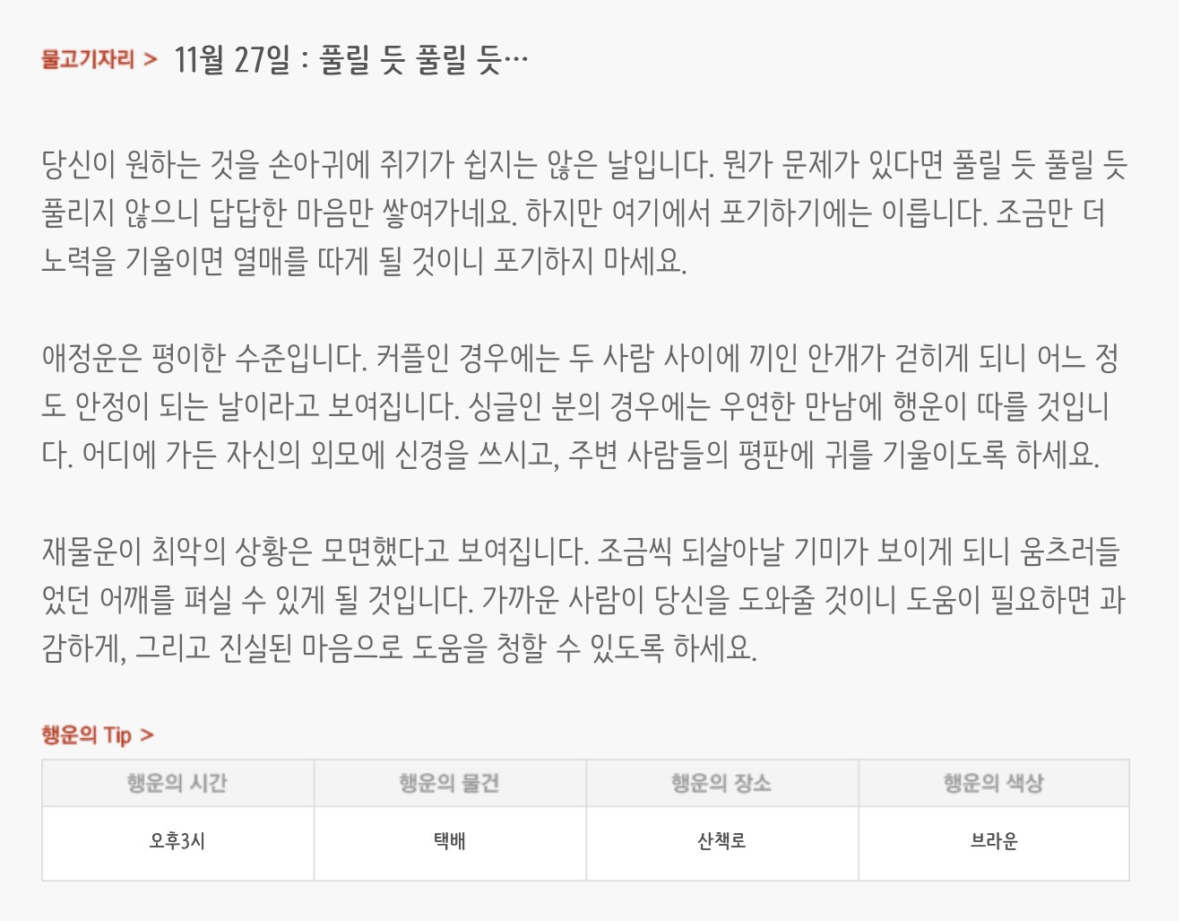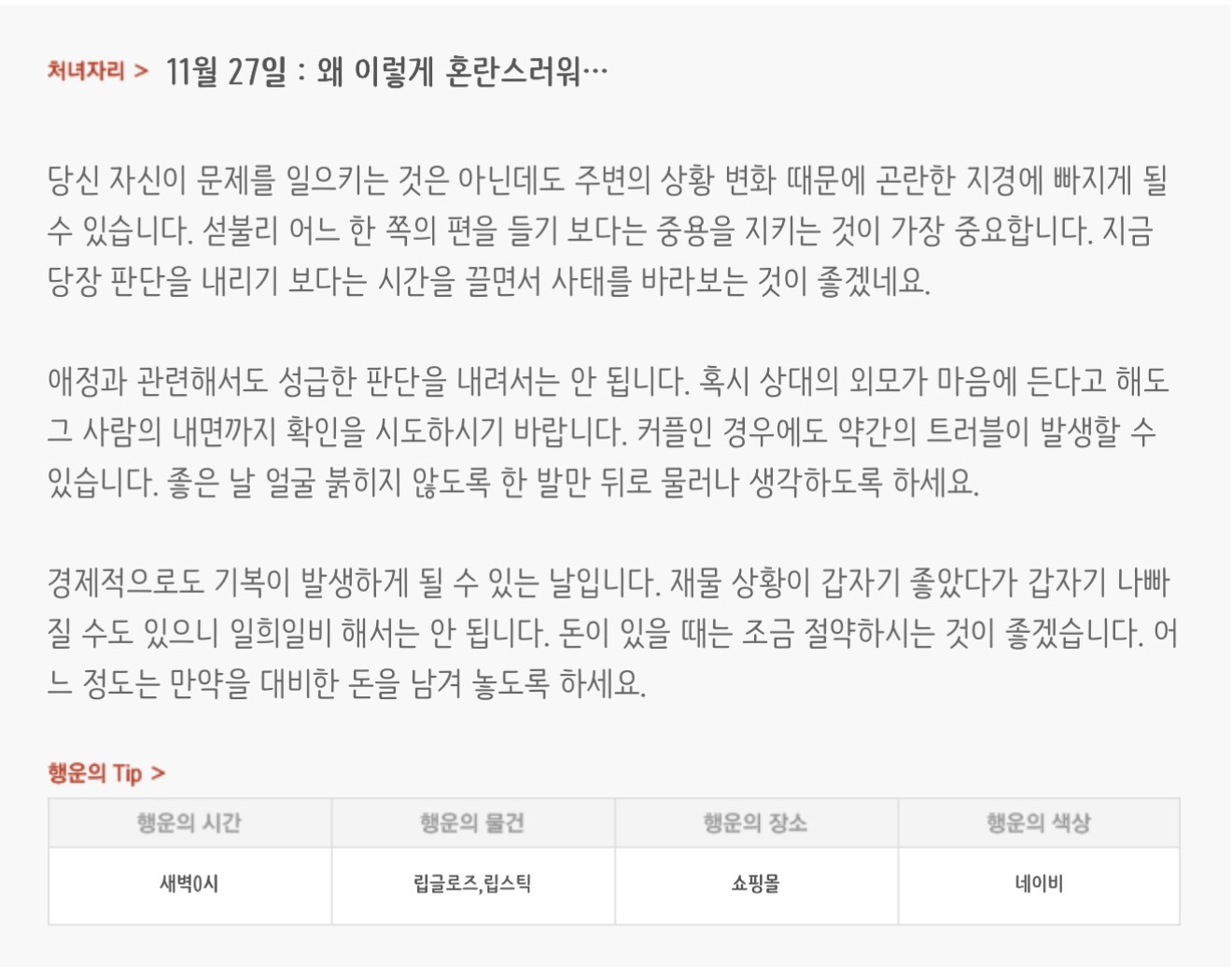 [기타]하루전에 미리보는 11월 27일 별자리운세 작성자자동Bot|작성시간25.11.26|조회수3,234 목록 댓글 29 글자크기 작게가 글자크기 크게가 출처 : 산수도인 다음검색 현재 게시글 추가 기능 열기 북마크 공유하기 신고 센터로 신고 댓글 댓글 29 댓글쓰기 답글쓰기 댓글 리스트 작성자focus | 작성시간 25.11.27 복채 작성자배시시 | 작성시간 25.11.27 복채 작성자개미지옥 | 작성시간 25.11.27 복채 작성자쟌소리 | 작성시간 25.11.27 복채 작성자NELL | 작성시간 25.11.27 복채 댓글 전체보기