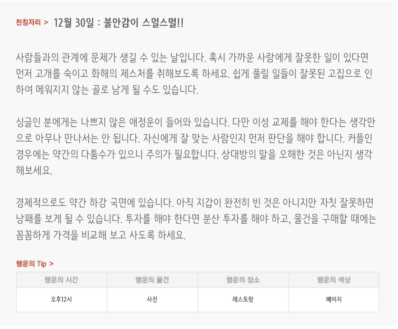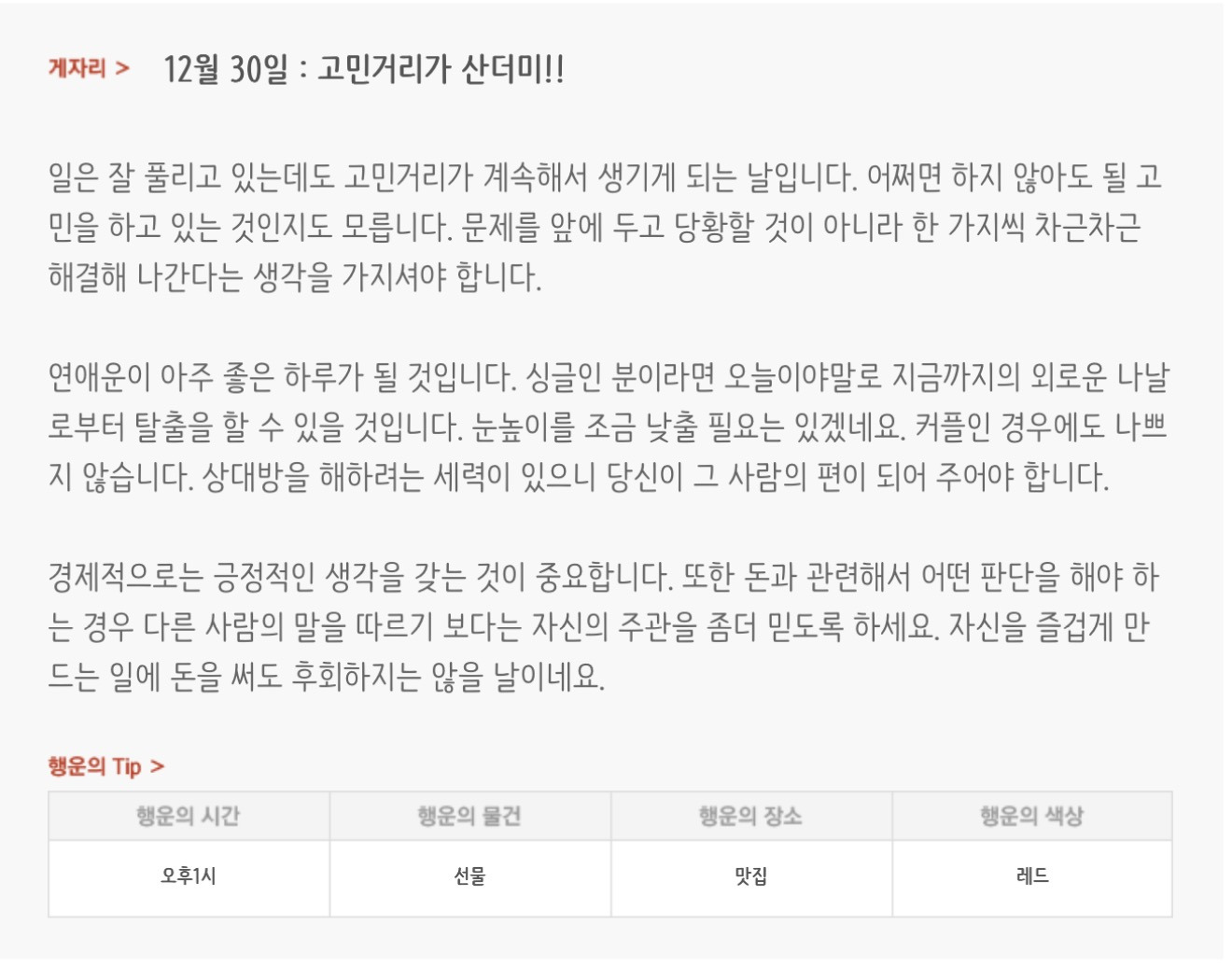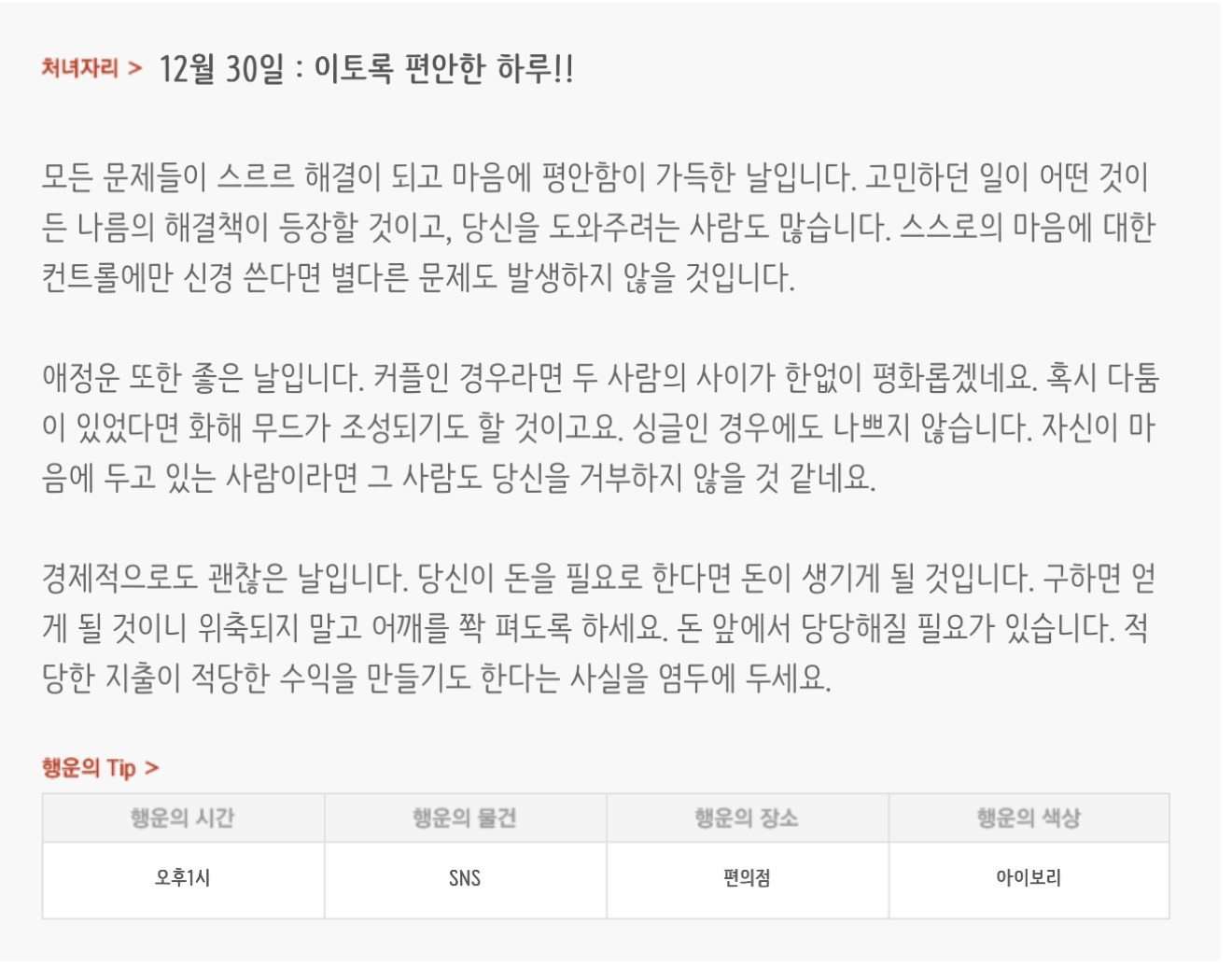 [기타]하루전에 미리보는 12월 30일 별자리운세 작성자자동Bot|작성시간25.12.29|조회수4,001 목록 댓글 37 글자크기 작게가 글자크기 크게가 방석 위로 모여라출처 : 산수도인 다음검색 현재 게시글 추가 기능 열기 북마크 공유하기 신고 센터로 신고 댓글 댓글 37 댓글쓰기 답글쓰기 댓글 리스트 작성자정아지 | 작성시간 25.12.30 복채 작성자돈내놔 | 작성시간 25.12.30 복채 작성자이조달라 | 작성시간 25.12.30 복채 작성자조슈아_17 | 작성시간 25.12.30 복채 작성자결혼해줄꺼아님 웃지마 | 작성시간 25.12.30 복채 댓글 전체보기