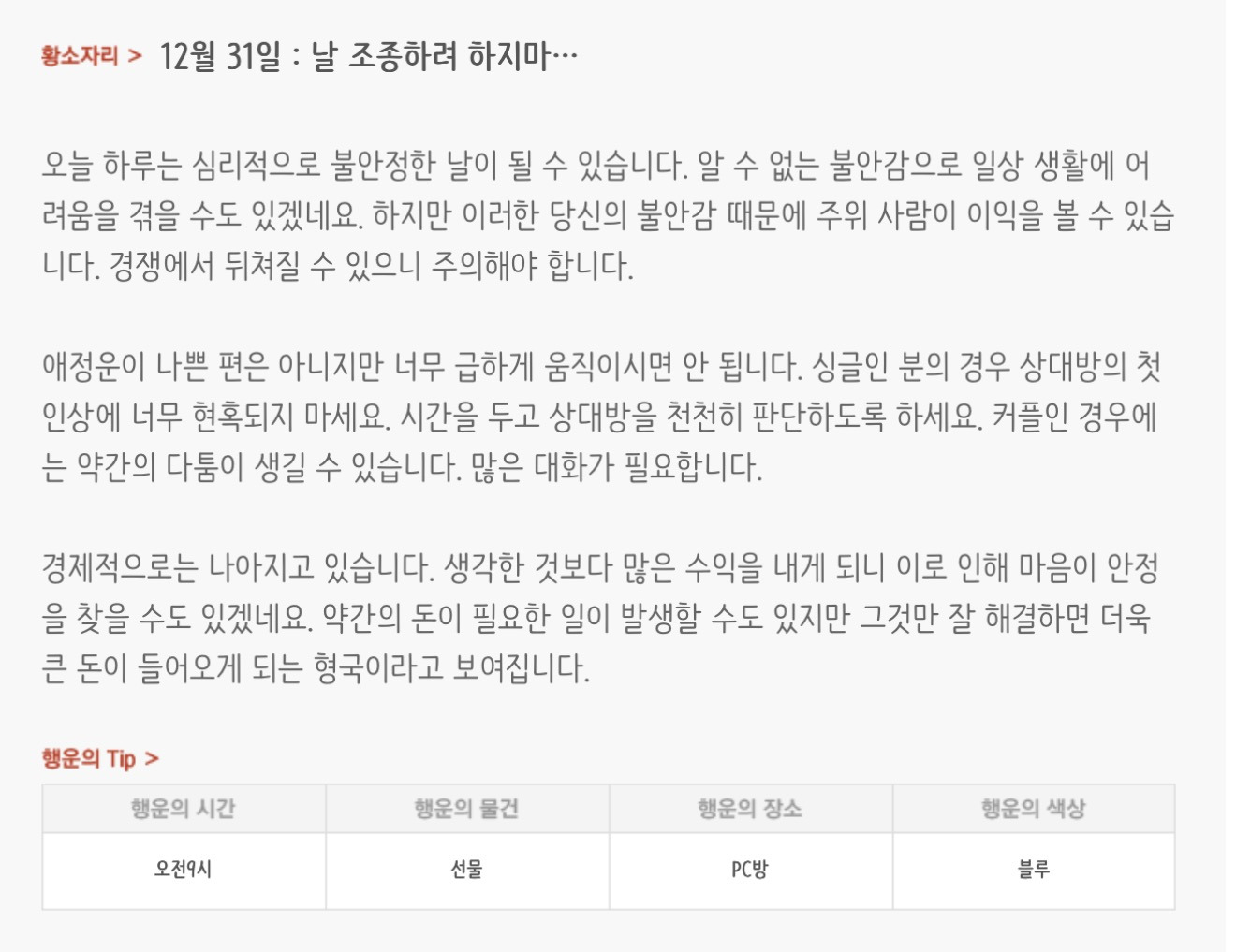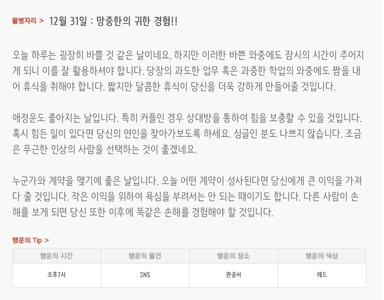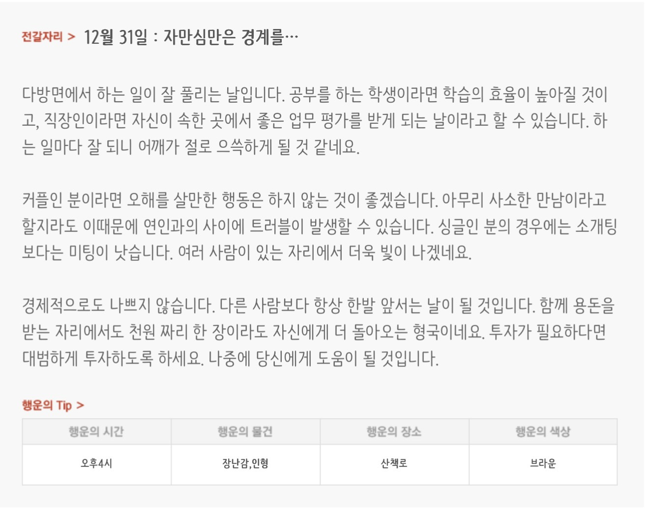 [기타]하루전에 미리보는 12월 31일 별자리운세 작성자자동Bot|작성시간25.12.30|조회수787 목록 댓글 30 글자크기 작게가 글자크기 크게가 방석 위로 모여라출처 : 산수도인 다음검색 현재 게시글 추가 기능 열기 북마크 공유하기 신고 센터로 신고 댓글 댓글 30 댓글쓰기 답글쓰기 댓글 리스트 작성자nct MARK | 작성시간 25.12.31 복채 작성자야간비행 (Turbulence) | 작성시간 25.12.31 복채 작성자리쿠여자친구 | 작성시간 25.12.31 복채 작성자nct dream RENJUN | 작성시간 25.12.31 복채 작성자우즈정식 | 작성시간 25.12.31 복채 댓글 전체보기