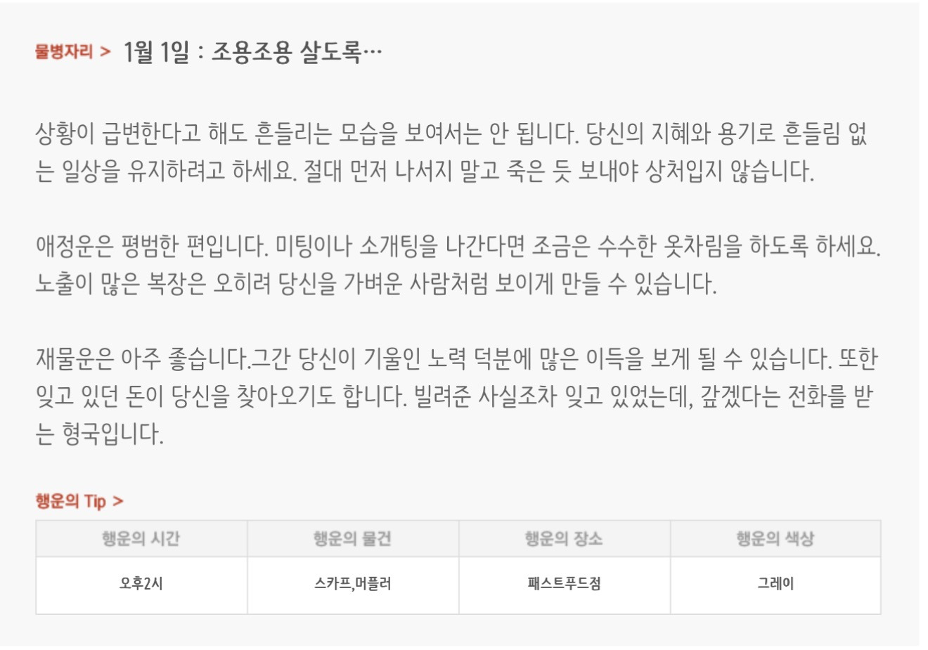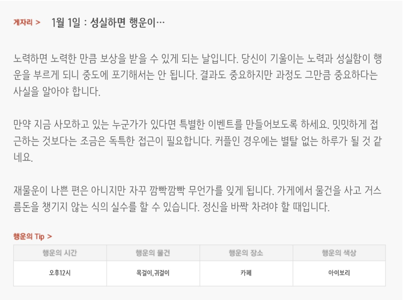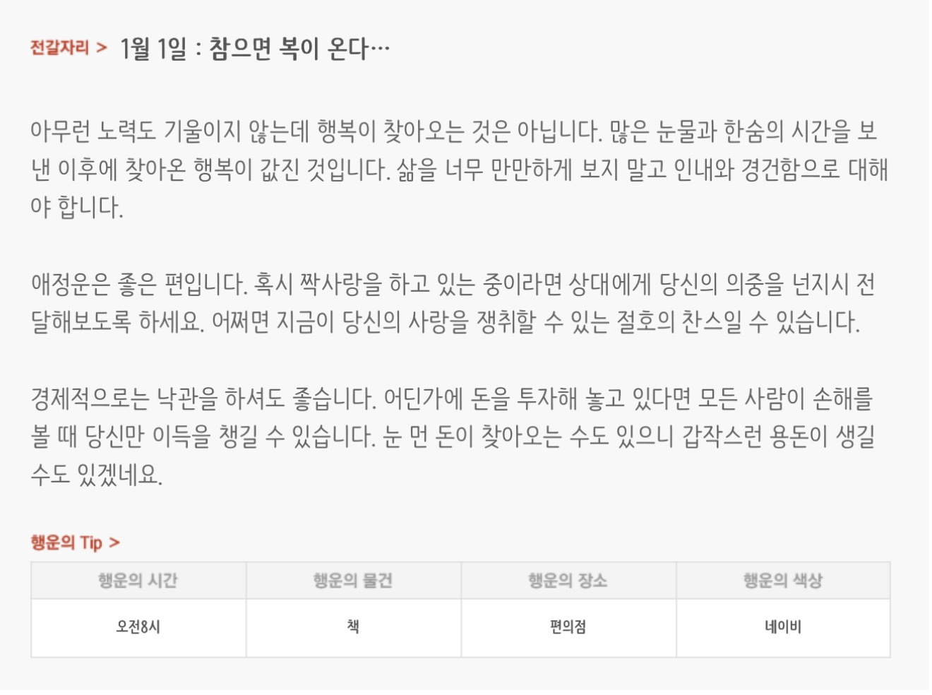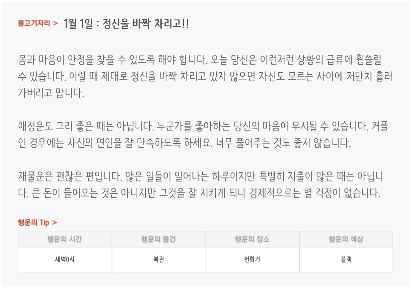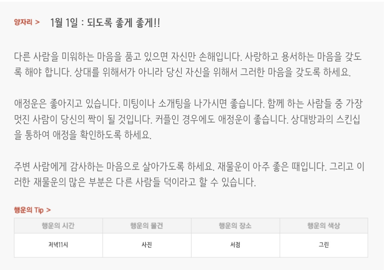 [기타]하루전에 미리보는 1월 1일 별자리운세 작성자자동Bot|작성시간25.12.31|조회수564 목록 댓글 29 글자크기 작게가 글자크기 크게가 방석 위로 모여라출처 : 산수도인 다음검색 현재 게시글 추가 기능 열기 북마크 공유하기 신고 센터로 신고 댓글 댓글 29 댓글쓰기 답글쓰기 댓글 리스트 작성자개미지옥 | 작성시간 26.01.01 복채 작성자야간비행 (Turbulence) | 작성시간 26.01.01 복채 작성자결혼해줄꺼아님 웃지마 | 작성시간 26.01.01 복채 작성자nct MARK | 작성시간 26.01.01 복채 작성자네이버관리자 | 작성시간 26.01.01 복채 댓글 전체보기