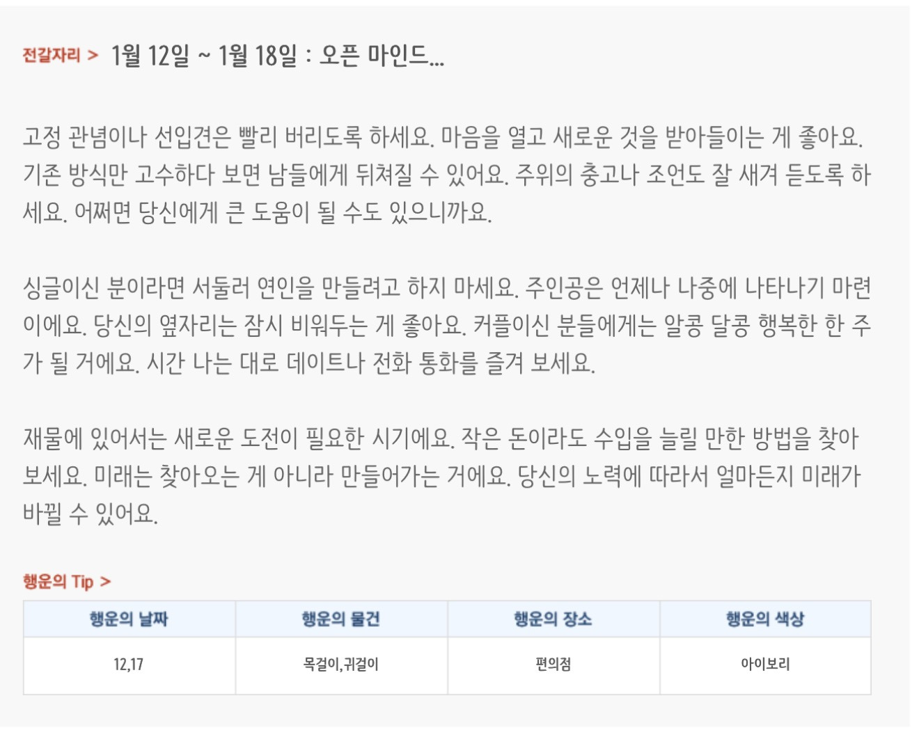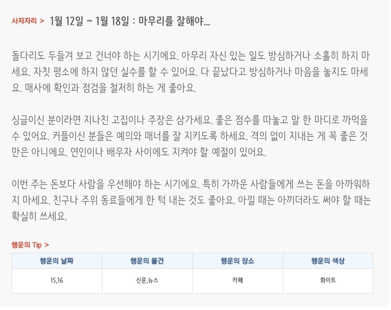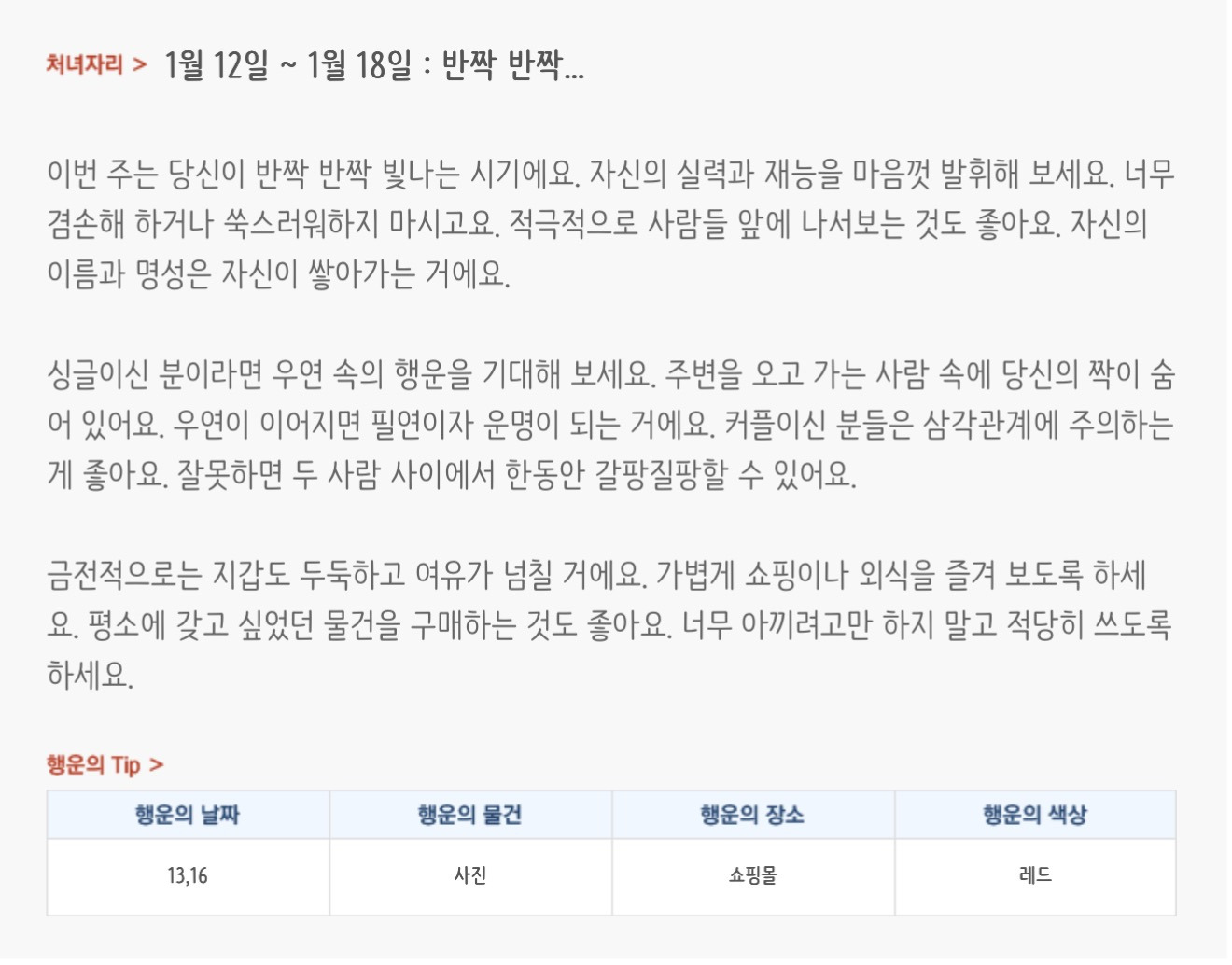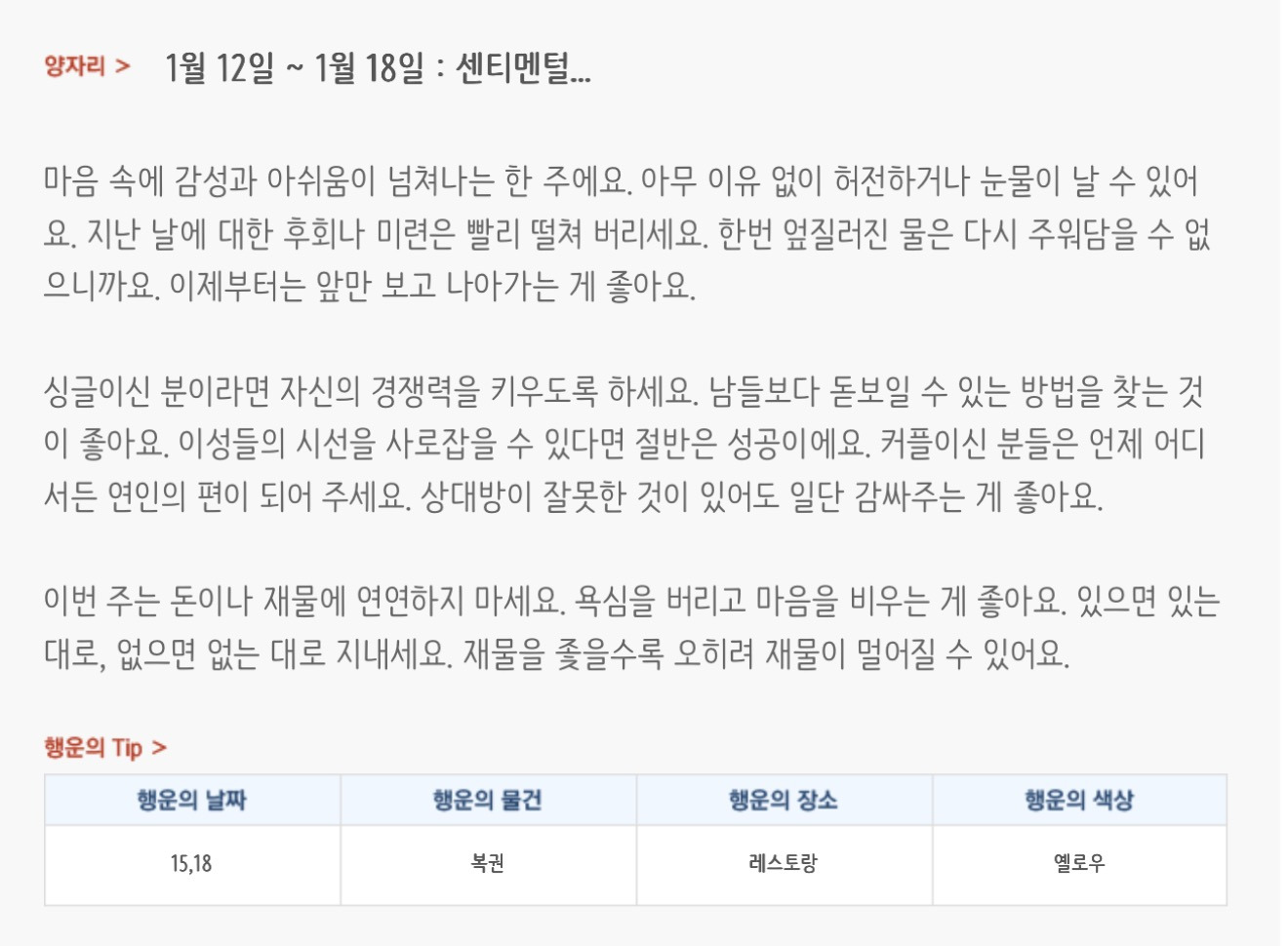 [기타]미리보는 1월 3주차 별자리운세 작성자자동Bot|작성시간26.01.11|조회수4,017 목록 댓글 37 글자크기 작게가 글자크기 크게가 방석 위로 모여라출처 : 산수도인 다음검색 현재 게시글 추가 기능 열기 북마크 공유하기 신고 센터로 신고 댓글 댓글 37 댓글쓰기 답글쓰기 댓글 리스트 작성자초랭이팀 | 작성시간 26.01.12 복채 작성자meovv | 작성시간 26.01.12 복채 작성자정아지 | 작성시간 26.01.12 복채 작성자cosmic | 작성시간 26.01.12 복채 작성자nnoon | 작성시간 26.01.12 복채 댓글 전체보기
