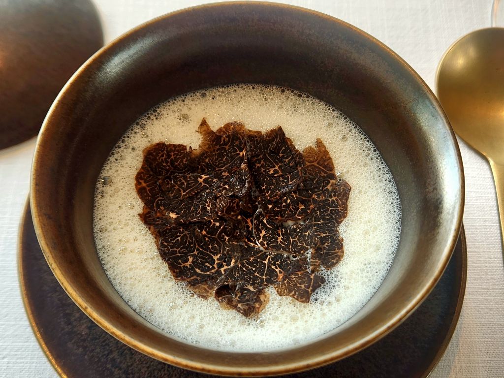 거품 형태의 타락죽 위에 트러플을 올린 요리. 쌀이나 죽 식감 아니고 거품이야. 트러플 향이 강해서 타락죽 맛은 잘 안 느껴졌어.