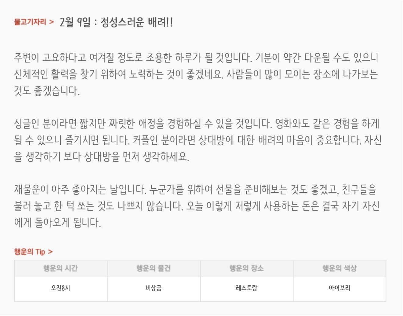 [기타]하루전에 미리보는 2월 9일 별자리운세 작성자자동Bot|작성시간26.02.08|조회수3,615 목록 댓글 33 글자크기 작게가 글자크기 크게가 방석 위로 모여라출처 : 산수도인 다음검색 현재 게시글 추가 기능 열기 북마크 공유하기 신고 센터로 신고 댓글 댓글 33 댓글쓰기 답글쓰기 댓글 리스트 작성자해윰 | 작성시간 26.02.09 복채🍀 작성자초랭이팀 | 작성시간 26.02.09 복채 작성자있나요사랑해본적영화처럼첫눈에반해 | 작성시간 26.02.09 복채 작성자NCT127 Mark Lee | 작성시간 26.02.09 복채 작성자야간비행 (Turbulence) | 작성시간 26.02.09 복채 댓글 전체보기