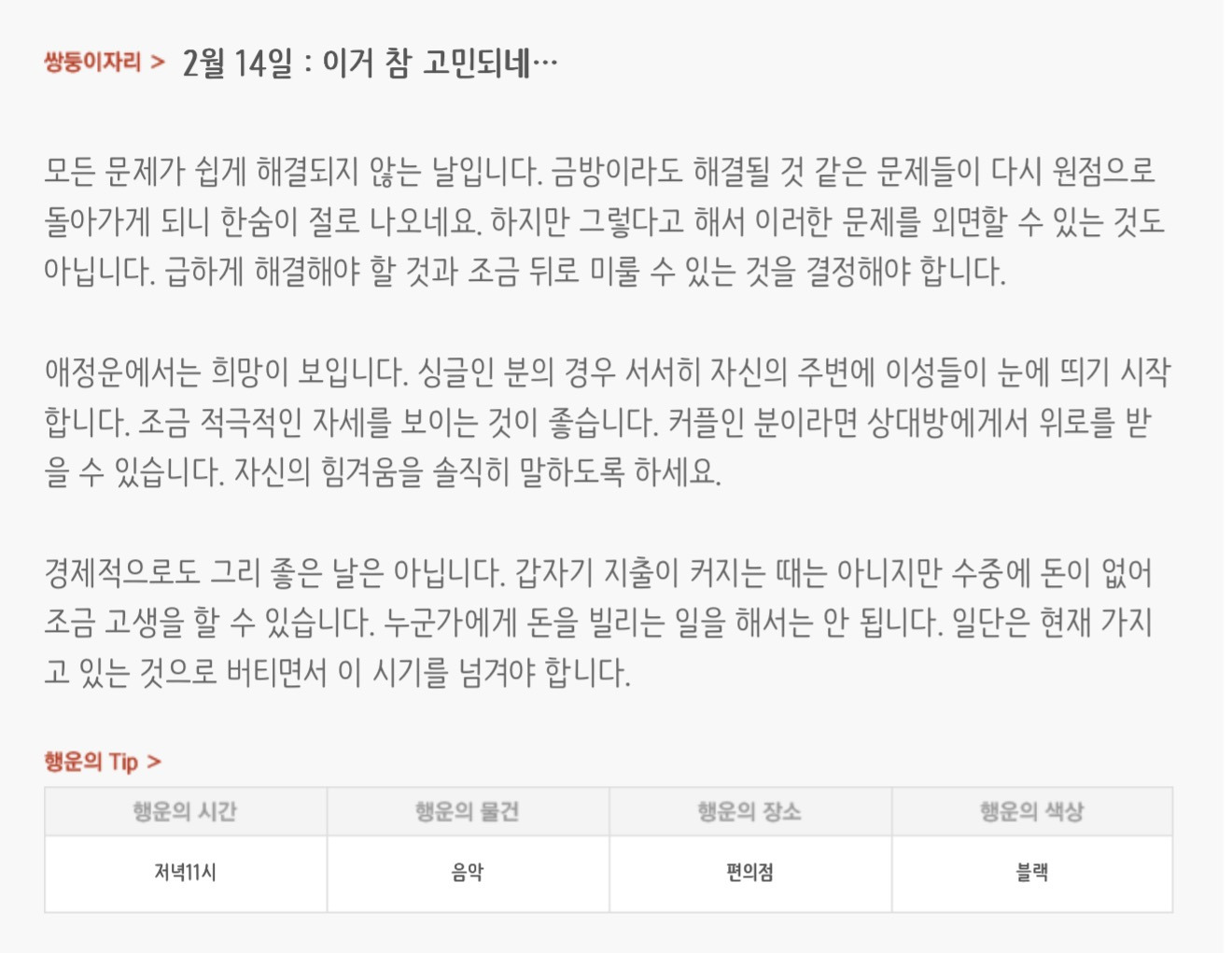 [기타]하루전에 미리보는 2월 14일 별자리운세 작성자자동Bot|작성시간26.02.13|조회수3,261 목록 댓글 28 글자크기 작게가 글자크기 크게가 방석 위로 모여라출처 : 산수도인 다음검색 현재 게시글 추가 기능 열기 북마크 공유하기 신고 센터로 신고 댓글 댓글 28 댓글쓰기 답글쓰기 댓글 리스트 작성자결혼해줄꺼아님 웃지마 | 작성시간 26.02.14 복채 작성자NCT127 Mark Lee | 작성시간 26.02.14 복채 작성자ESTP | 작성시간 26.02.14 복채 작성자앤미첼 | 작성시간 26.02.14 복채 작성자nct dream RENJUN | 작성시간 26.02.14 복채 댓글 전체보기