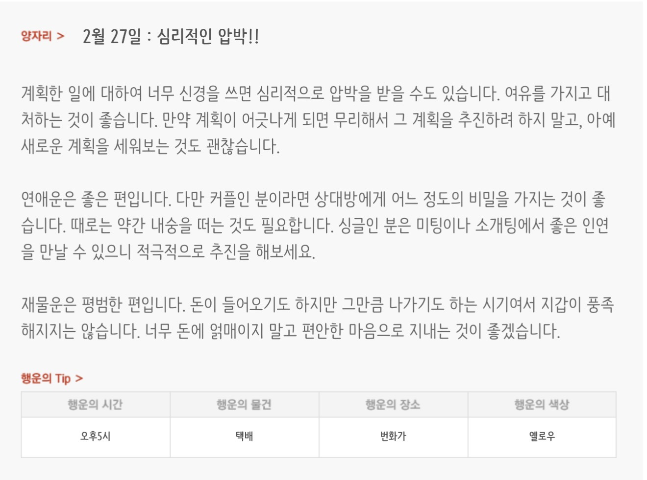 [기타]하루전에 미리보는 2월 27일 별자리운세 작성자자동Bot|작성시간26.02.26|조회수3,271 목록 댓글 23 글자크기 작게가 글자크기 크게가 방석 위로 모여라출처 : 산수도인 다음검색 현재 게시글 추가 기능 열기 북마크 공유하기 신고 센터로 신고 댓글 댓글 23 댓글쓰기 답글쓰기 댓글 리스트 작성자배시시 | 작성시간 26.02.27 복채 작성자아니근데진짜ㅅㅂ | 작성시간 26.02.27 복채 작성자NCT127 Mark Lee | 작성시간 26.02.27 복채 작성자nct dream RENJUN | 작성시간 26.02.27 복채 작성자해윰 | 작성시간 26.02.27 복채🍀 댓글 전체보기