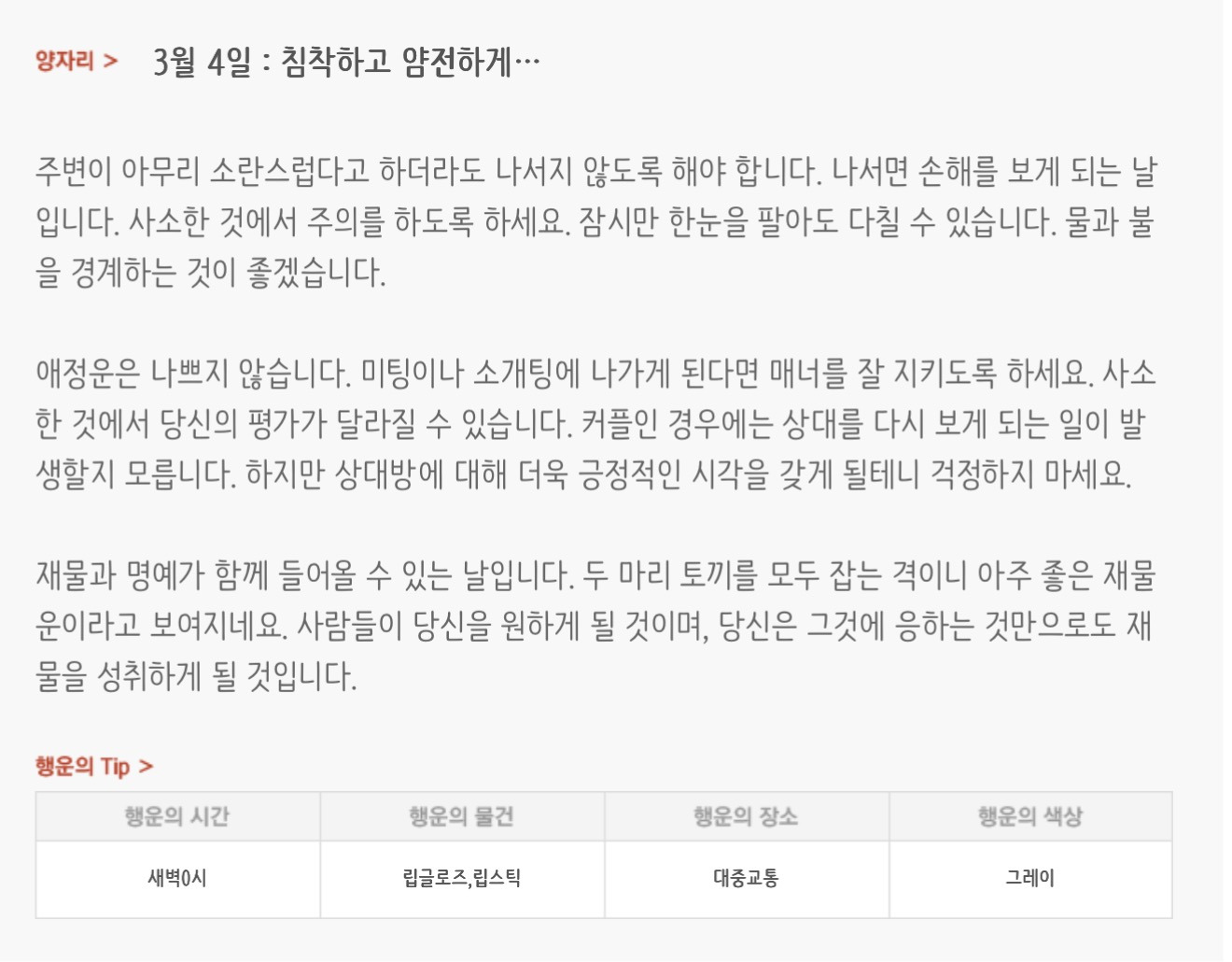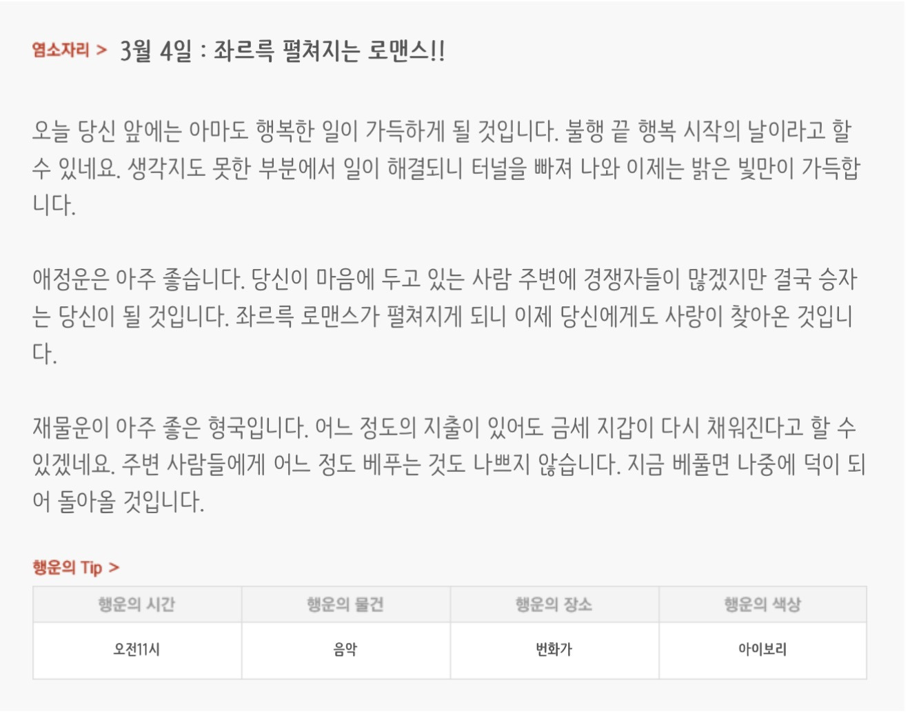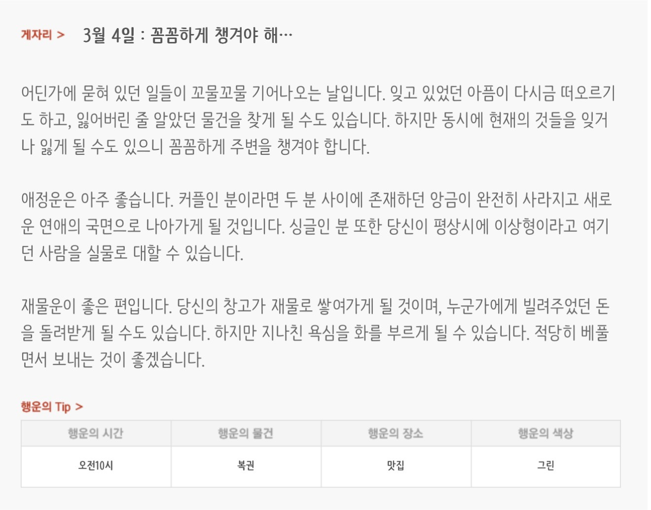 [기타]하루전에 미리보는 3월 4일 별자리운세 작성자자동Bot|작성시간26.03.03|조회수3,344 목록 댓글 33 글자크기 작게가 글자크기 크게가 방석 위로 모여라출처 : 산수도인 다음검색 현재 게시글 추가 기능 열기 북마크 공유하기 신고 센터로 신고 댓글 댓글 33 댓글쓰기 답글쓰기 댓글 리스트 작성자수정이 | 작성시간 01:25 new 복채 작성자넌나의봄이야 | 작성시간 01:40 new 복채 작성자nnoon | 작성시간 02:21 new 복채 작성자FINALE | 작성시간 06:34 new 복채 작성자nct dream RENJUN | 작성시간 07:48 new 복채 댓글 전체보기
