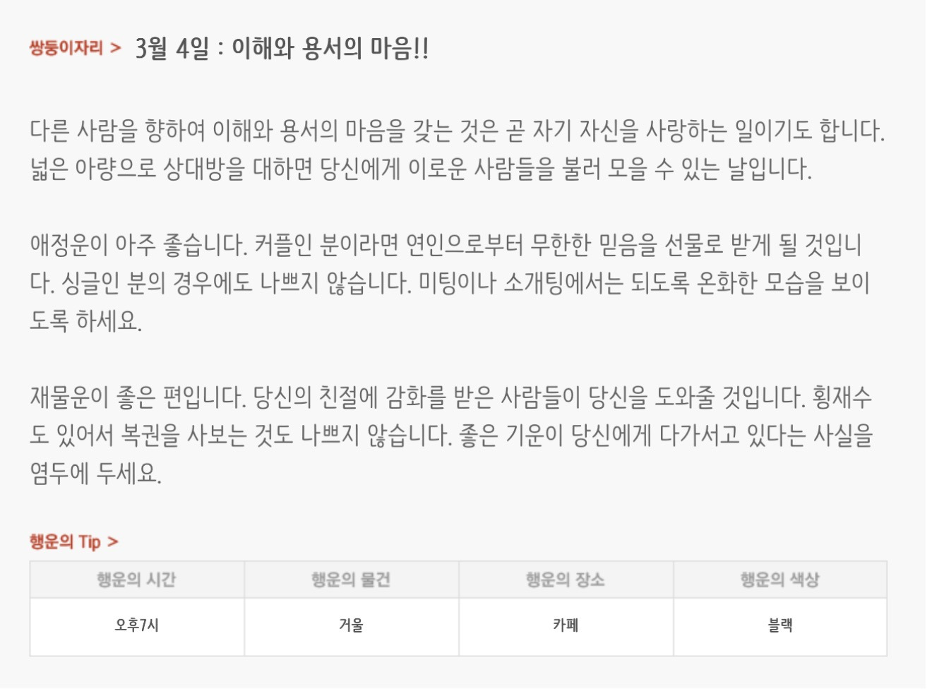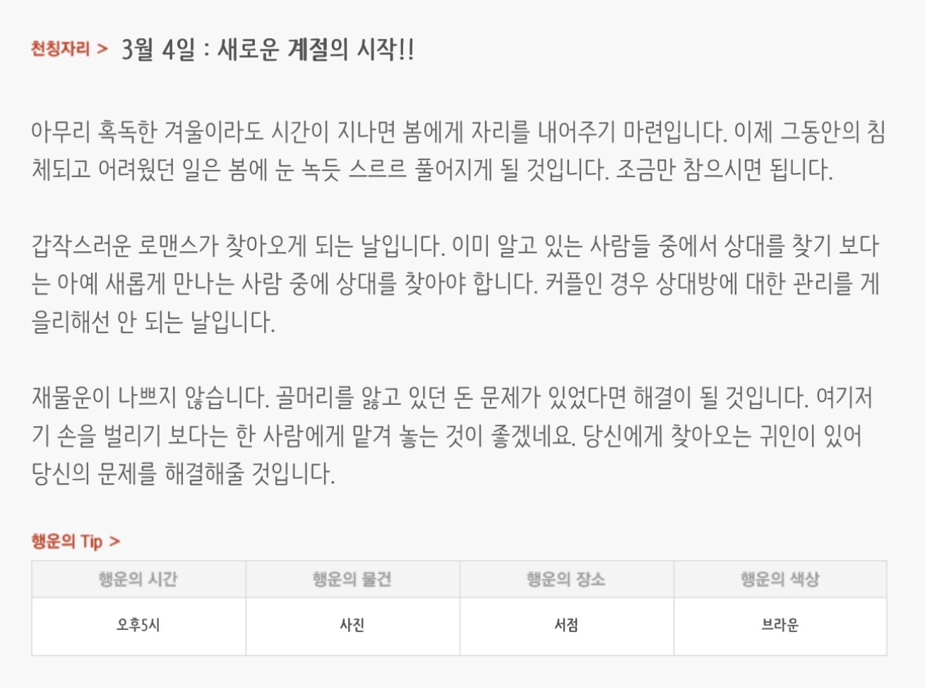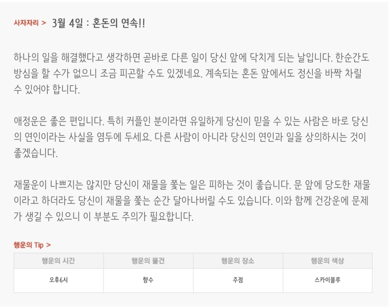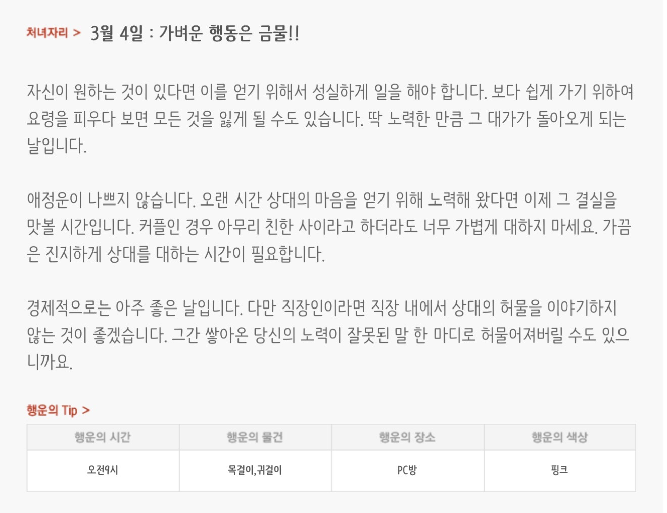 [기타]하루전에 미리보는 3월 4일 별자리운세 작성자자동Bot|작성시간26.03.03|조회수3,344 목록 댓글 33 글자크기 작게가 글자크기 크게가 방석 위로 모여라출처 : 산수도인 다음검색 현재 게시글 추가 기능 열기 북마크 공유하기 신고 센터로 신고 댓글 댓글 33 댓글쓰기 답글쓰기 댓글 리스트 작성자수정이 | 작성시간 01:25 new 복채 작성자넌나의봄이야 | 작성시간 01:40 new 복채 작성자nnoon | 작성시간 02:21 new 복채 작성자FINALE | 작성시간 06:34 new 복채 작성자nct dream RENJUN | 작성시간 07:48 new 복채 댓글 전체보기