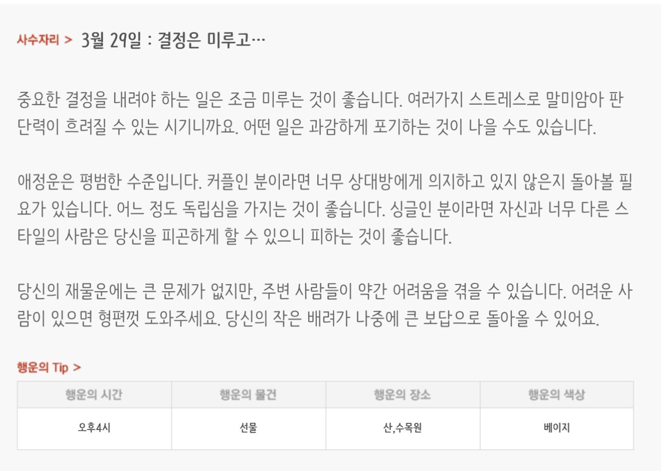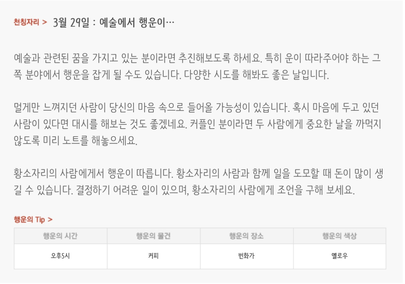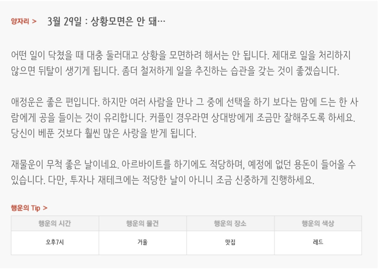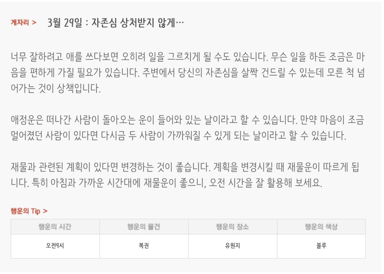 [기타]하루전에 미리보는 3월 29일 별자리운세 작성자자동Bot|작성시간26.03.28|조회수629 목록 댓글 24 글자크기 작게가 글자크기 크게가 방석 위로 모여라출처 : 산수도인 다음검색 현재 게시글 추가 기능 열기 북마크 공유하기 신고 센터로 신고 댓글 댓글 24 댓글쓰기 답글쓰기 댓글 리스트 작성자네이버관리자 | 작성시간 26.03.29 복채 작성자waterfire | 작성시간 26.03.29 복채 작성자nct dream RENJUN | 작성시간 26.03.29 복채 작성자NCT127 Mark Lee | 작성시간 26.03.29 복채 작성자Lee준영 | 작성시간 26.03.29 복채 댓글 전체보기