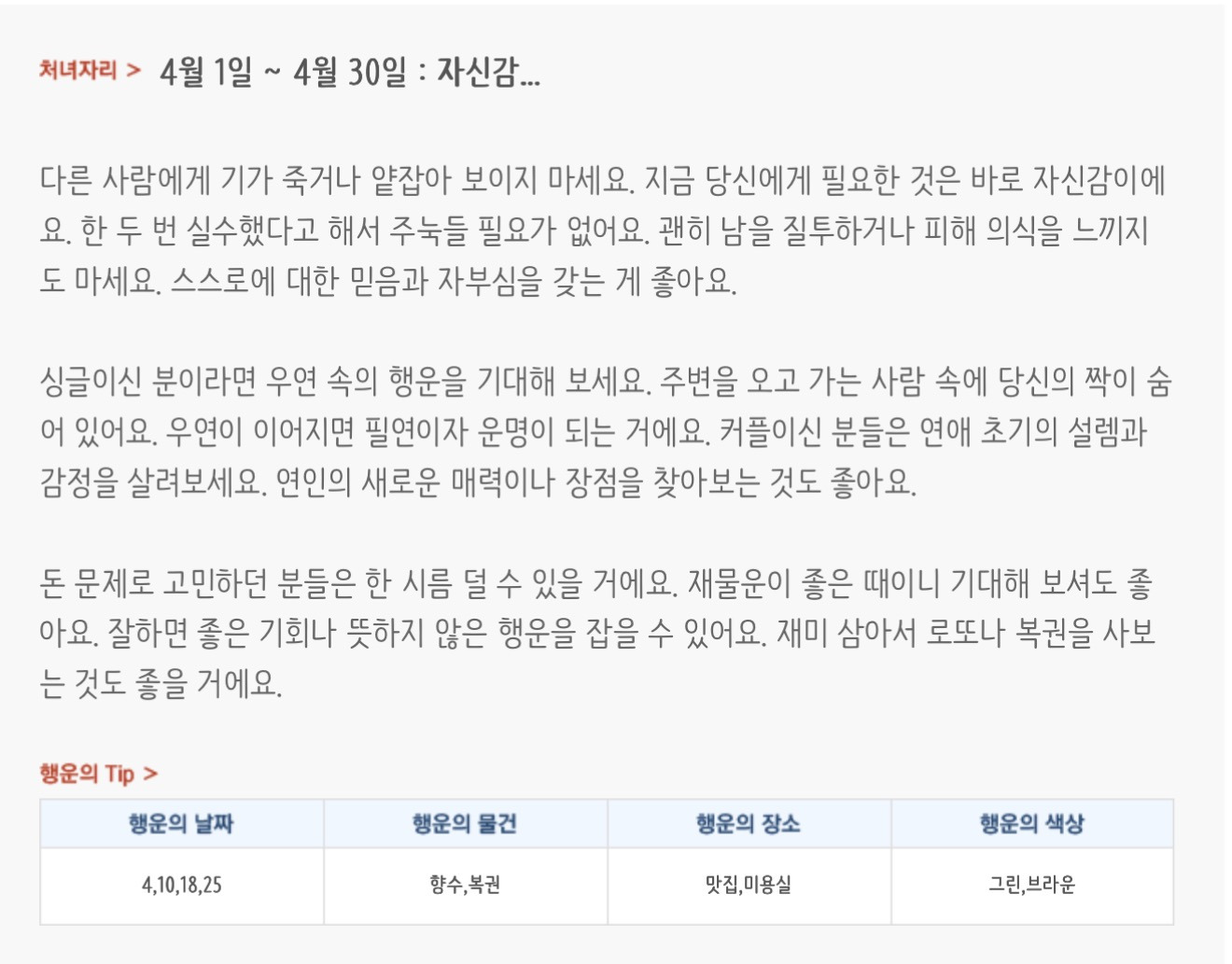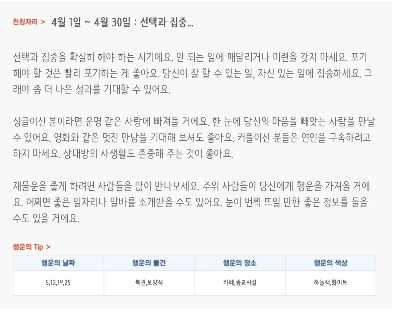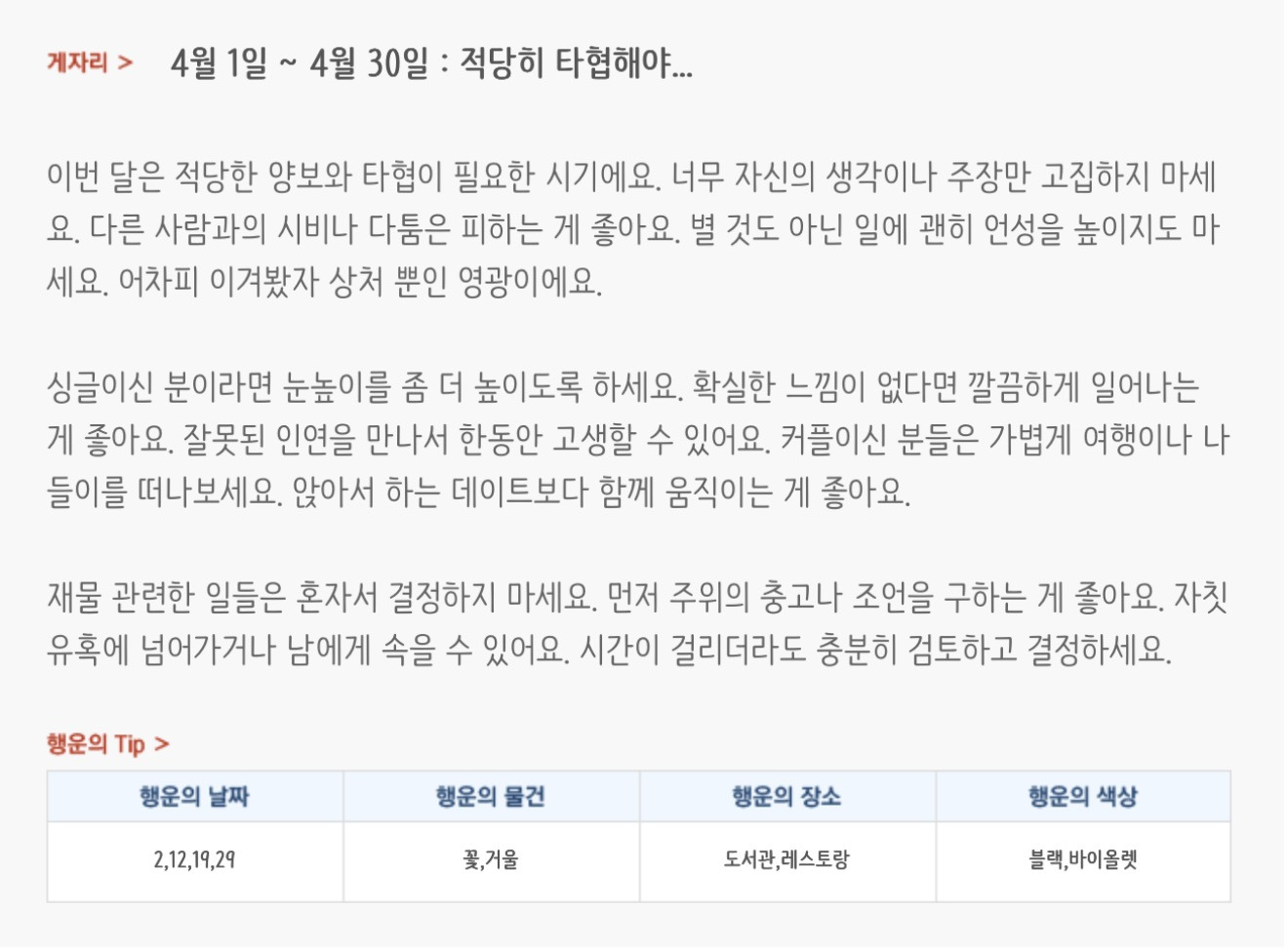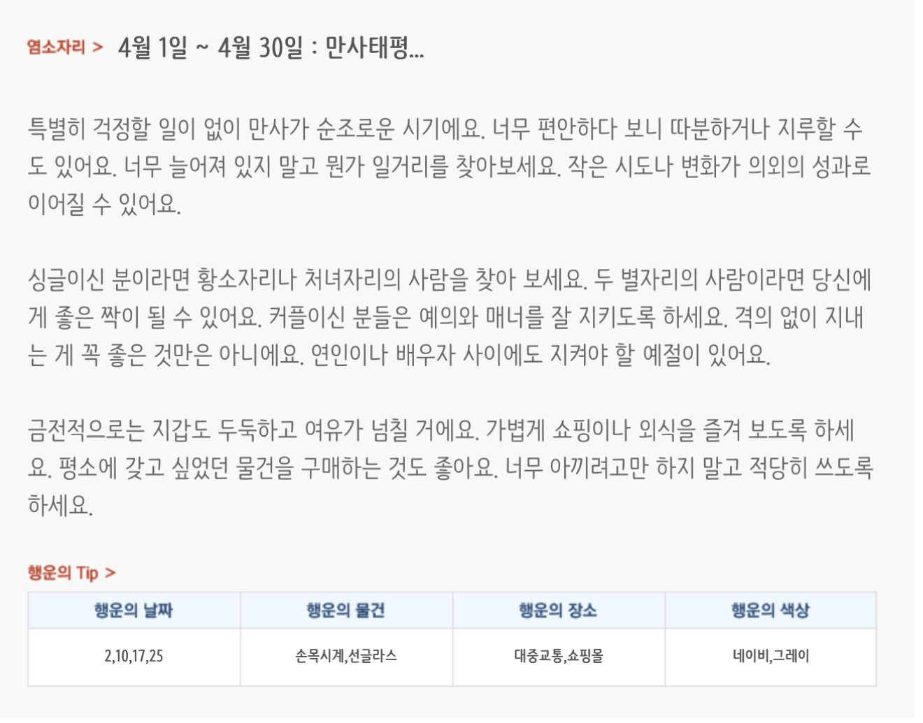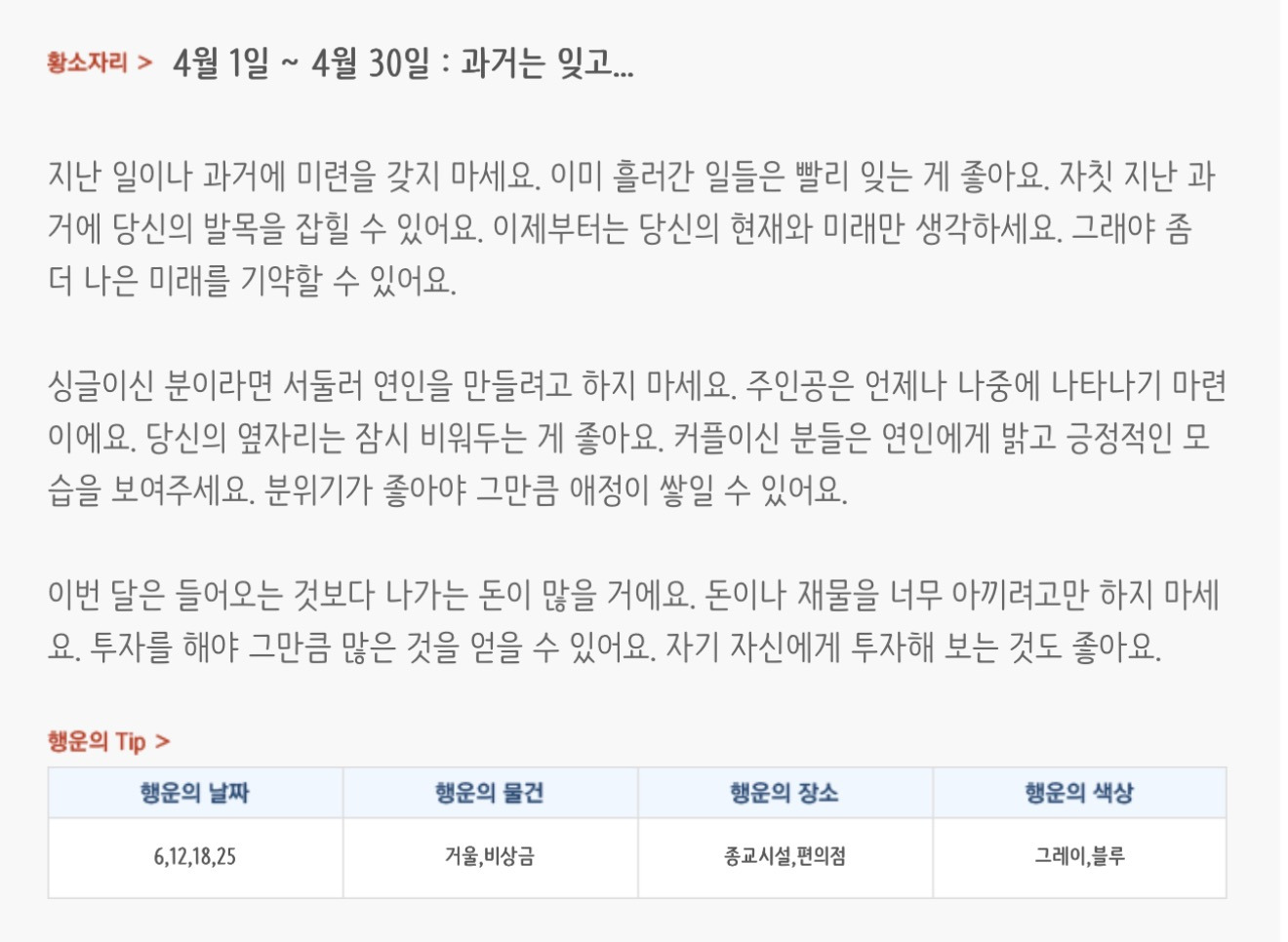 [기타]미리보는 4월 월간 별자리운세 작성자자동Bot|작성시간26.03.31|조회수854 목록 댓글 37 글자크기 작게가 글자크기 크게가 방석 위로 모여라출처 : 산수도인 다음검색 현재 게시글 추가 기능 열기 북마크 공유하기 신고 센터로 신고 댓글 댓글 37 댓글쓰기 답글쓰기 댓글 리스트 작성자내심장이라도꺼내서보여줄까 | 작성시간 26.04.01 복채 작성자Lee준영 | 작성시간 26.04.01 복채 작성자칭송 | 작성시간 26.04.01 복채 작성자ESTP | 작성시간 26.04.02 복채 작성자빨래바구니 | 작성시간 26.04.06 복채 댓글 전체보기