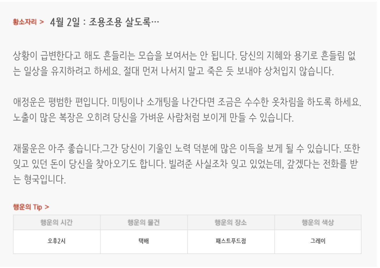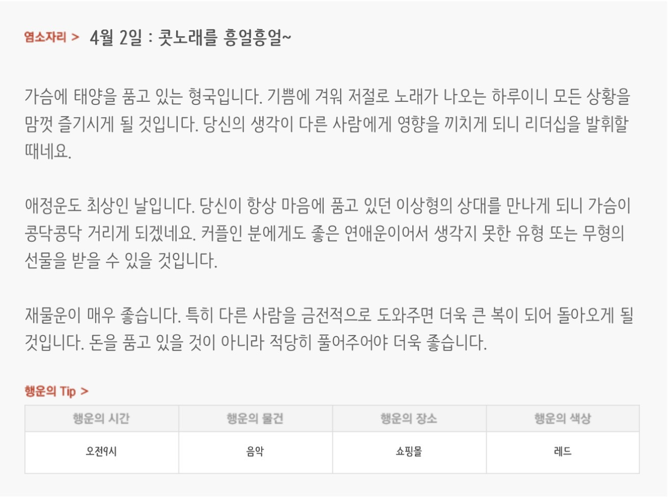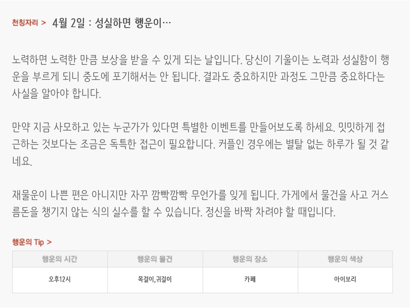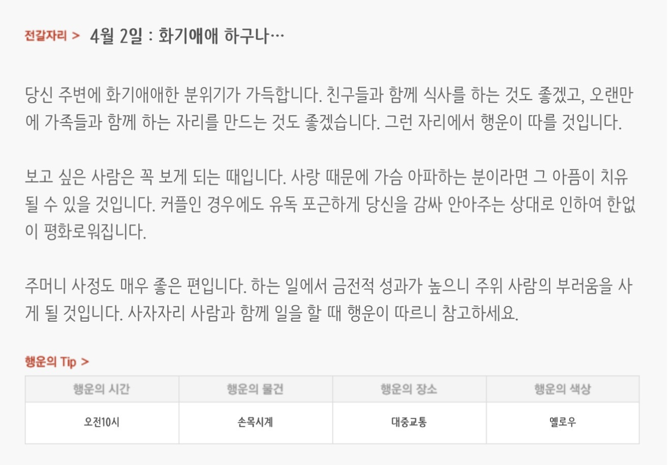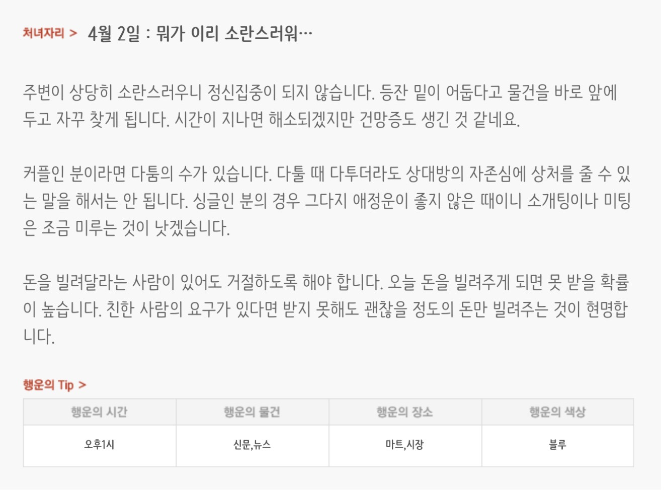 [기타]하루전에 미리보는 4월 2일 별자리운세 작성자자동Bot|작성시간26.04.01|조회수738 목록 댓글 30 글자크기 작게가 글자크기 크게가 방석 위로 모여라출처 : 산수도인 다음검색 현재 게시글 추가 기능 열기 북마크 공유하기 신고 센터로 신고 댓글 댓글 30 댓글쓰기 답글쓰기 댓글 리스트 작성자개미지옥 | 작성시간 26.04.02 복채 작성자동그라미고양이 | 작성시간 26.04.02 복채 작성자nct dream RENJUN | 작성시간 26.04.02 복채 작성자마슈마로 | 작성시간 26.04.02 복채 작성자ESTP | 작성시간 26.04.02 복채 댓글 전체보기