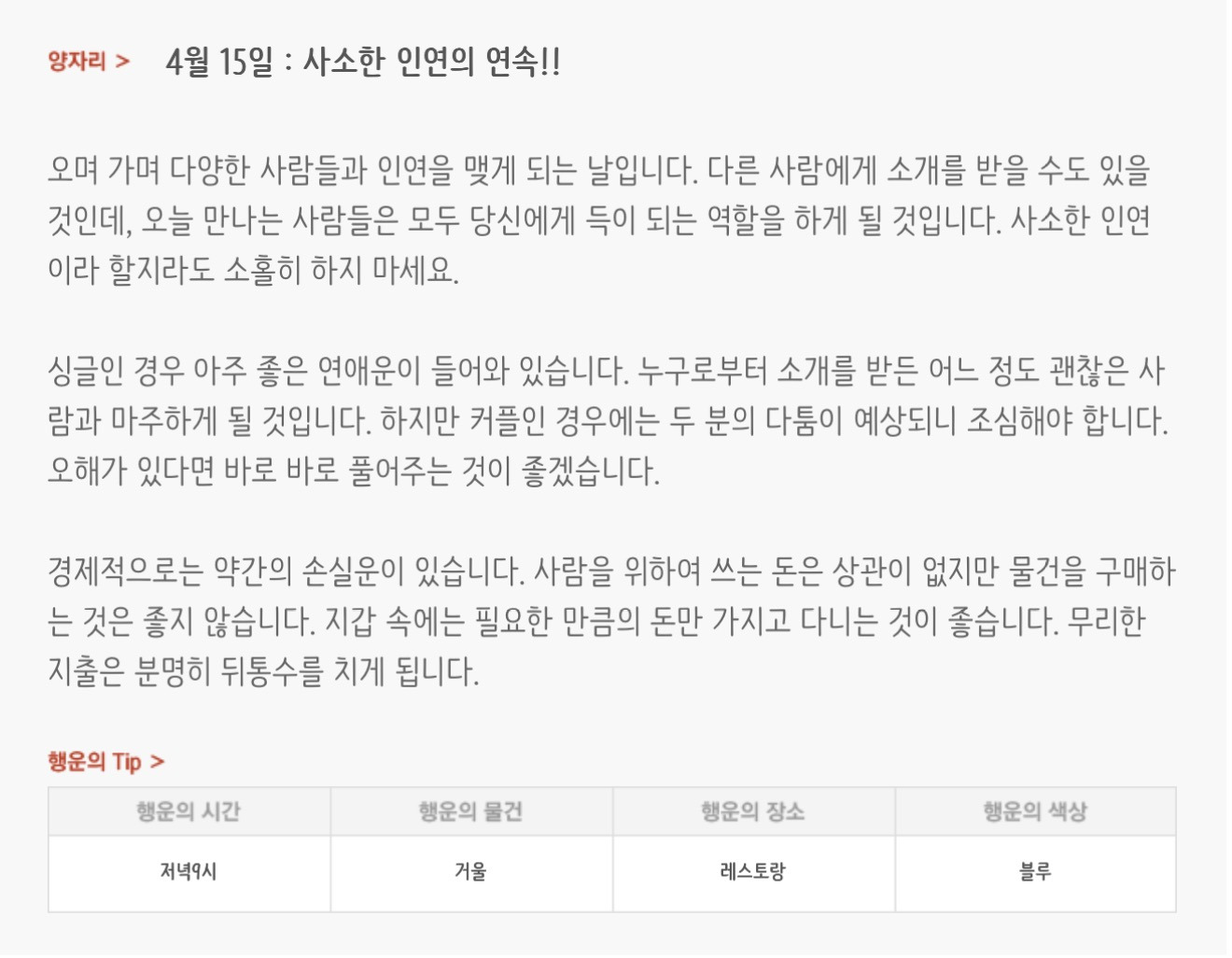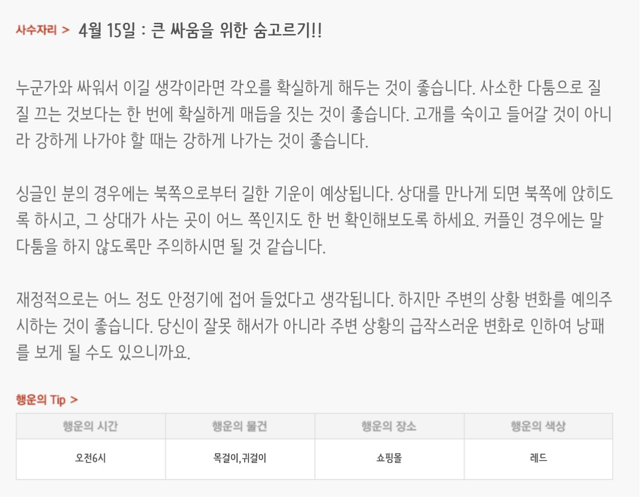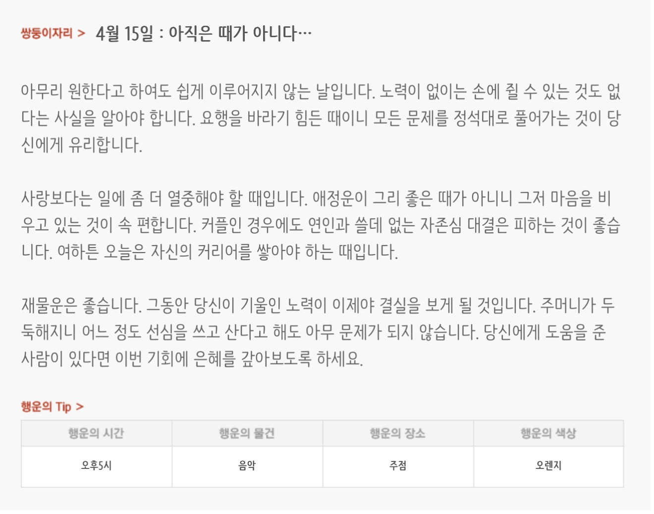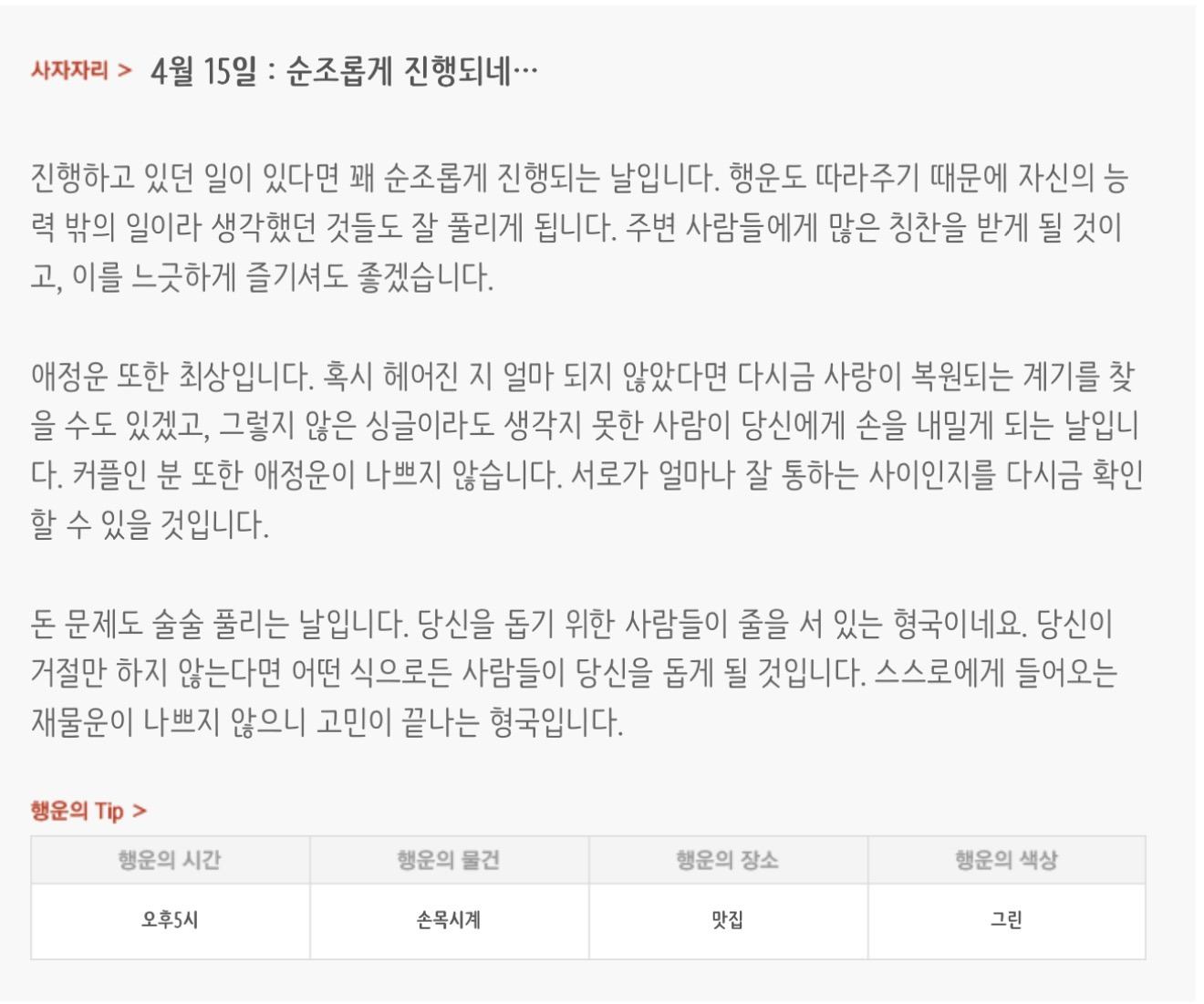 [기타]하루전에 미리보는 4월 15일 별자리운세 작성자자동Bot|작성시간26.04.14|조회수768 목록 댓글 30 글자크기 작게가 글자크기 크게가 방석 위로 모여라출처 : 산수도인 다음검색 현재 게시글 추가 기능 열기 북마크 공유하기 신고 센터로 신고 댓글 댓글 30 댓글쓰기 답글쓰기 댓글 리스트 작성자내심장이라도꺼내서보여줄까 | 작성시간 26.04.15 new 복채 작성자동그라미고양이 | 작성시간 26.04.15 new 복채 작성자nct dream RENJUN | 작성시간 26.04.15 new 복채 작성자Lee준영 | 작성시간 26.04.15 new 복채 작성자ESTP | 작성시간 26.04.15 new 복채 댓글 전체보기