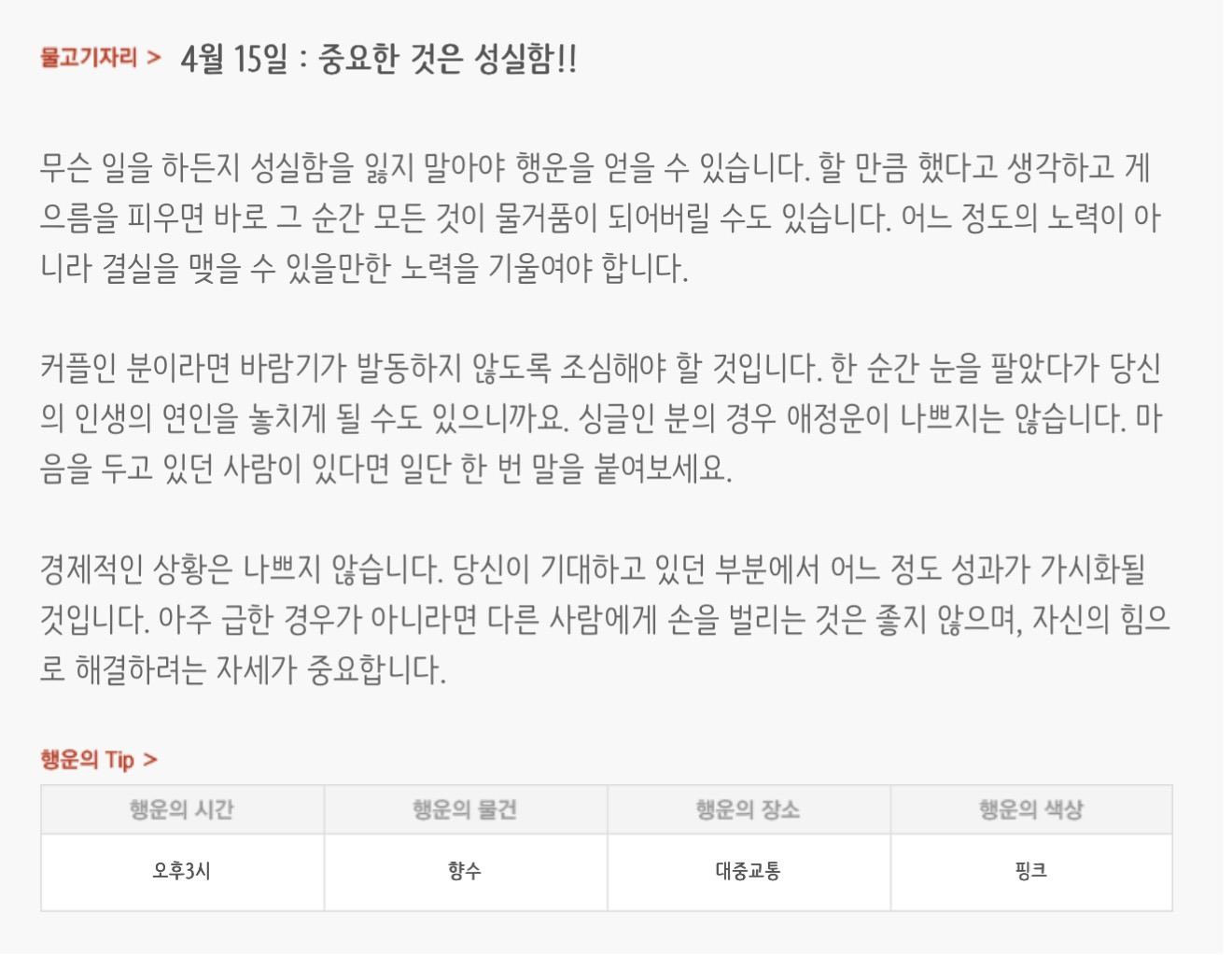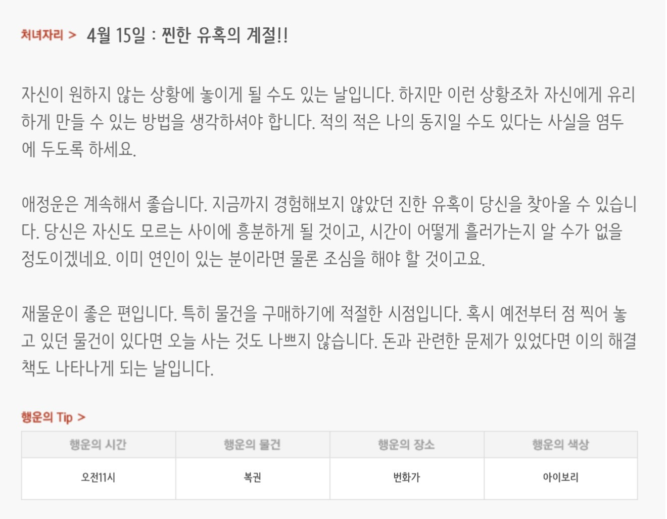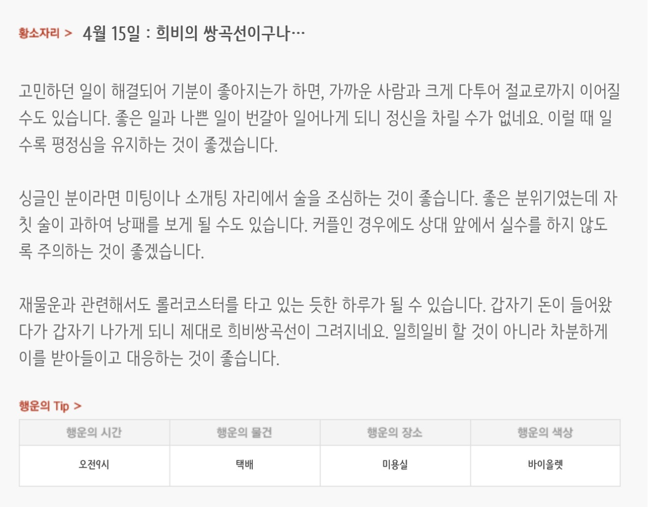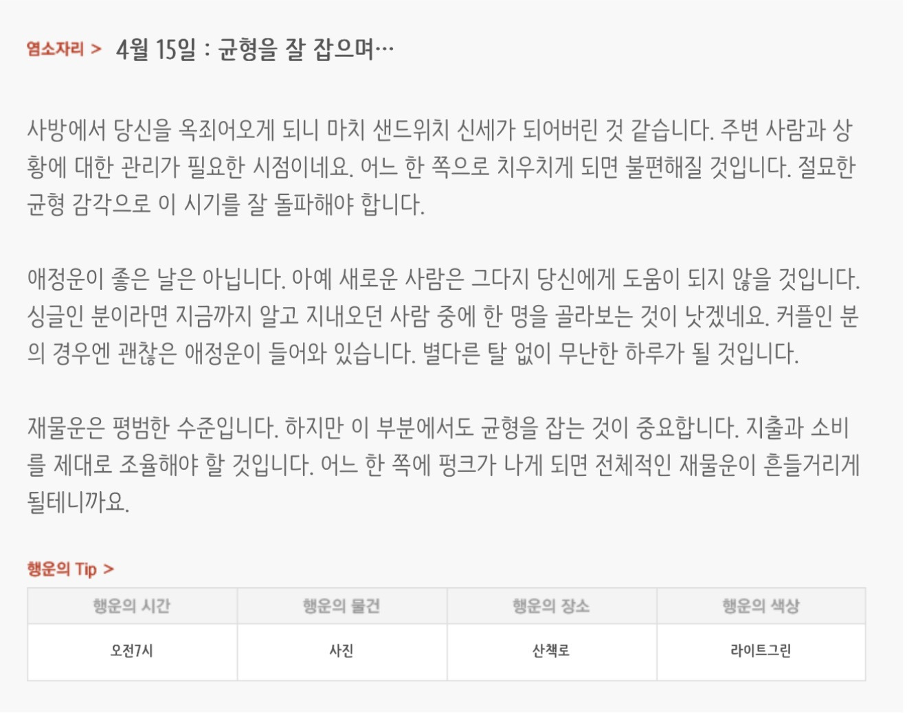 [기타]하루전에 미리보는 4월 15일 별자리운세 작성자자동Bot|작성시간26.04.14|조회수768 목록 댓글 30 글자크기 작게가 글자크기 크게가 방석 위로 모여라출처 : 산수도인 다음검색 현재 게시글 추가 기능 열기 북마크 공유하기 신고 센터로 신고 댓글 댓글 30 댓글쓰기 답글쓰기 댓글 리스트 작성자내심장이라도꺼내서보여줄까 | 작성시간 26.04.15 new 복채 작성자동그라미고양이 | 작성시간 26.04.15 new 복채 작성자nct dream RENJUN | 작성시간 26.04.15 new 복채 작성자Lee준영 | 작성시간 26.04.15 new 복채 작성자ESTP | 작성시간 26.04.15 new 복채 댓글 전체보기