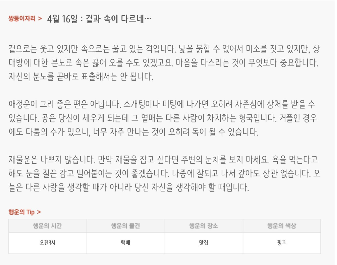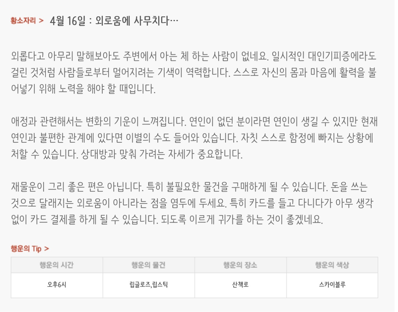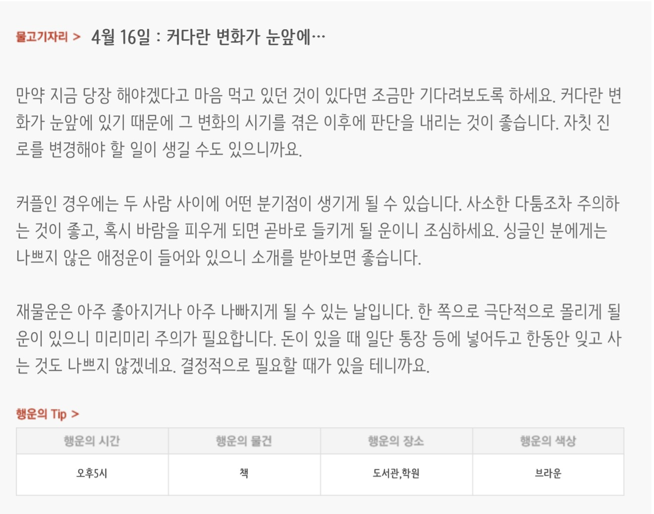 [기타]하루전에 미리보는 4월 16일 별자리운세 작성자자동Bot|작성시간26.04.15|조회수625 목록 댓글 27 글자크기 작게가 글자크기 크게가 방석 위로 모여라출처 : 산수도인 다음검색 현재 게시글 추가 기능 열기 북마크 공유하기 신고 센터로 신고 댓글 댓글 27 댓글쓰기 답글쓰기 댓글 리스트 작성자개미지옥 | 작성시간 26.04.16 복채 작성자내심장이라도꺼내서보여줄까 | 작성시간 26.04.16 복채 작성자OdetoLove | 작성시간 26.04.16 복채 작성자정아지 | 작성시간 26.04.16 복채 작성자이조달라 | 작성시간 26.04.16 복채 댓글 전체보기