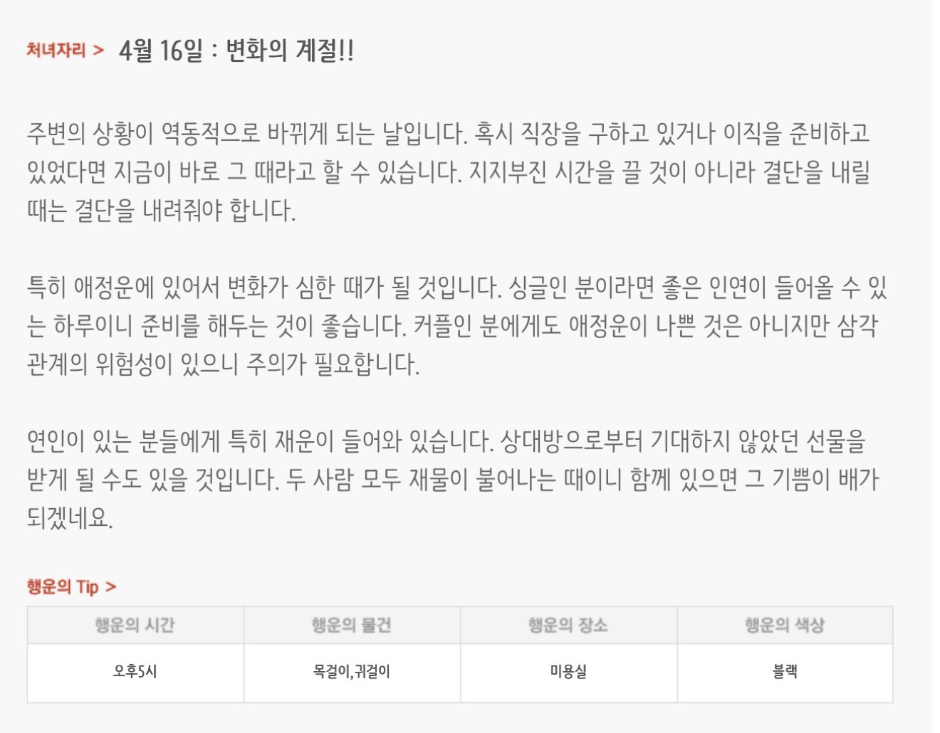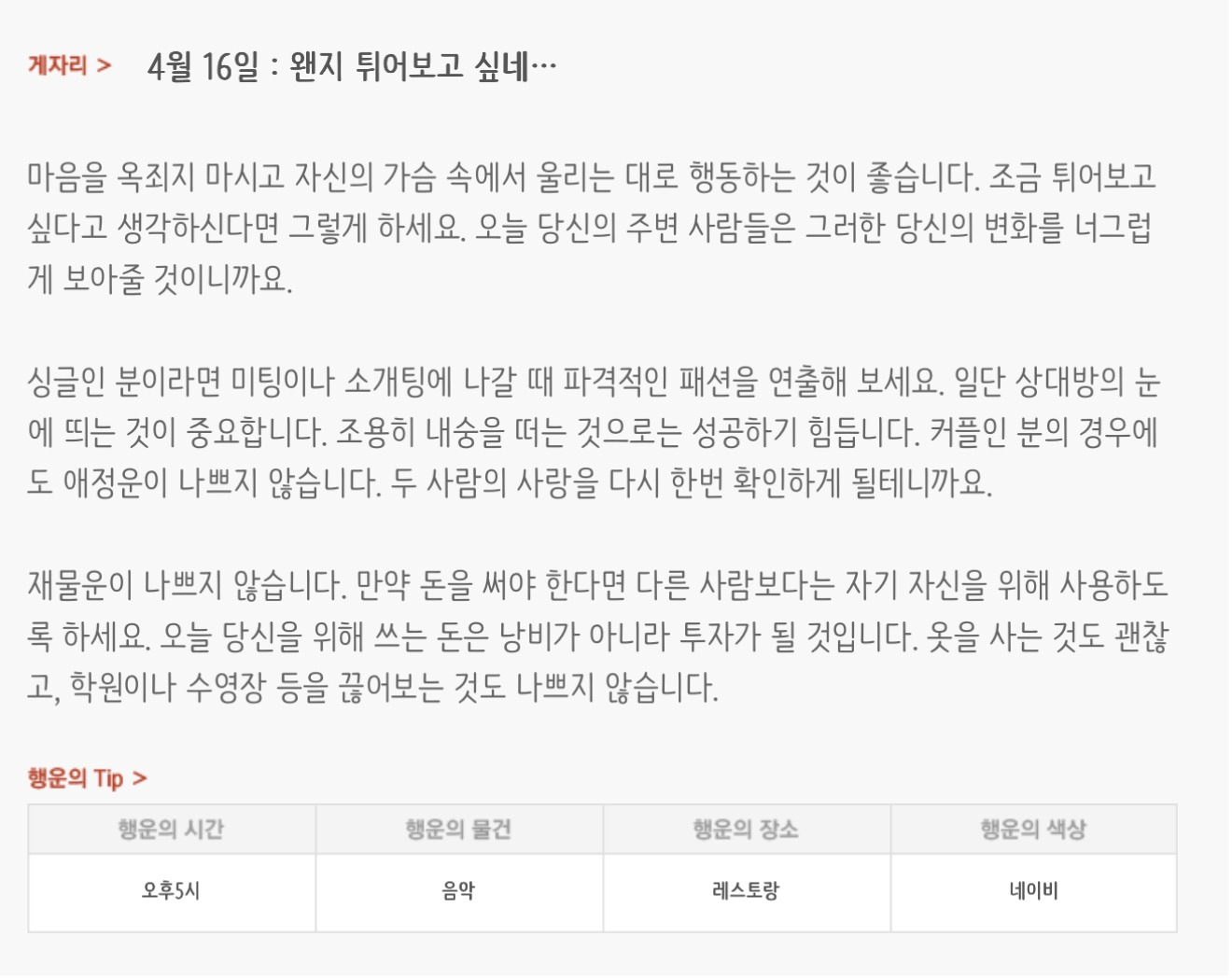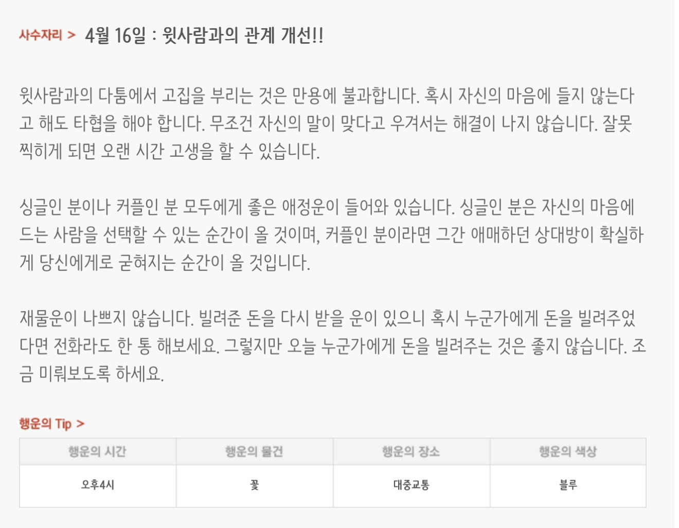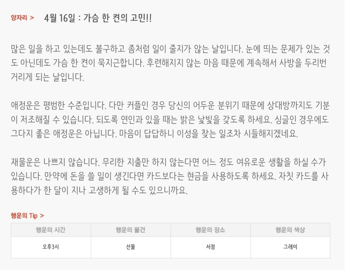 [기타]하루전에 미리보는 4월 16일 별자리운세 작성자자동Bot|작성시간26.04.15|조회수625 목록 댓글 27 글자크기 작게가 글자크기 크게가 방석 위로 모여라출처 : 산수도인 다음검색 현재 게시글 추가 기능 열기 북마크 공유하기 신고 센터로 신고 댓글 댓글 27 댓글쓰기 답글쓰기 댓글 리스트 작성자개미지옥 | 작성시간 26.04.16 복채 작성자내심장이라도꺼내서보여줄까 | 작성시간 26.04.16 복채 작성자OdetoLove | 작성시간 26.04.16 복채 작성자정아지 | 작성시간 26.04.16 복채 작성자이조달라 | 작성시간 26.04.16 복채 댓글 전체보기