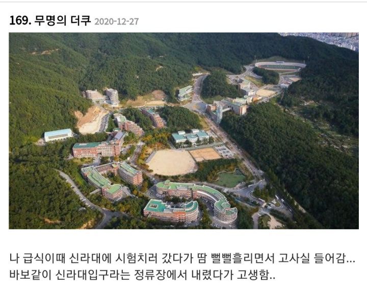 작성자방탄 지민 작성시간 21.09.04 부대 안쪽은 못봐서 모르겠는데 정문에서 바라볼땐 경사 없어보이드만 안쪽 건물이 가파른가보다,, 신라대 갈 일 있어서 가봤는데 경사가 있긴한데 생각보다 ㄱㅊ음.. 우리학교..^^.. 여름에 셔틀 올라갈때 타는 냄새 나고,, 새내기땐 버스타는게 롤러코스터 타는 기분이었지,,