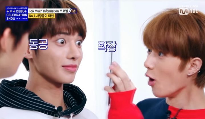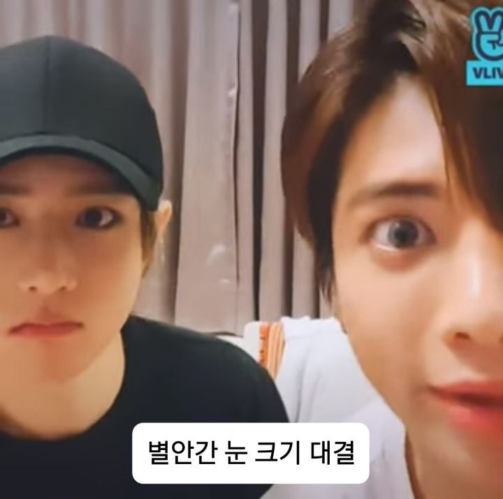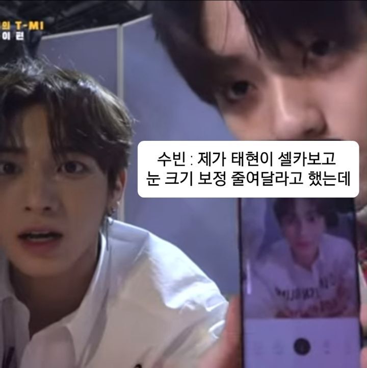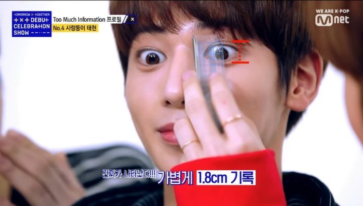 데뷔 초 때 눈이 워낙 커서 크기 재 보는 태현이