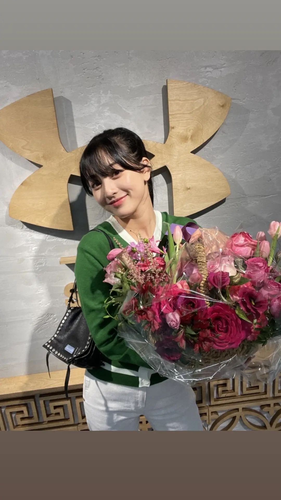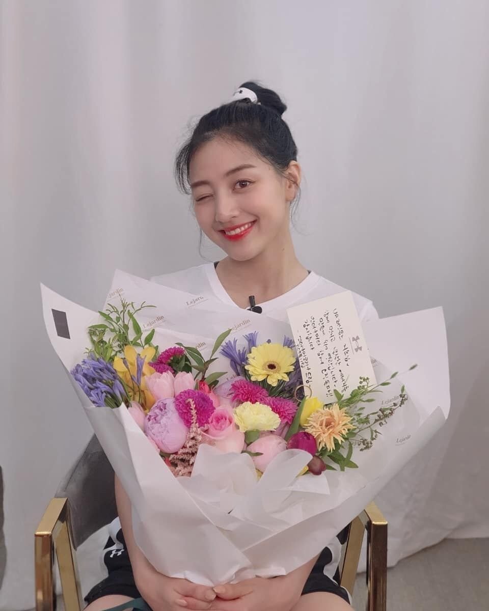 꽃다발에 편지 잘 보면 뮤즈 어쩌구 써있구