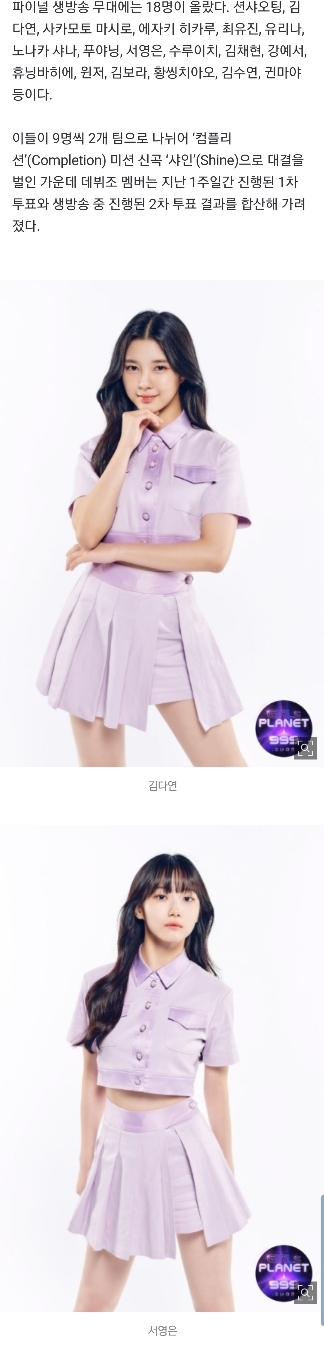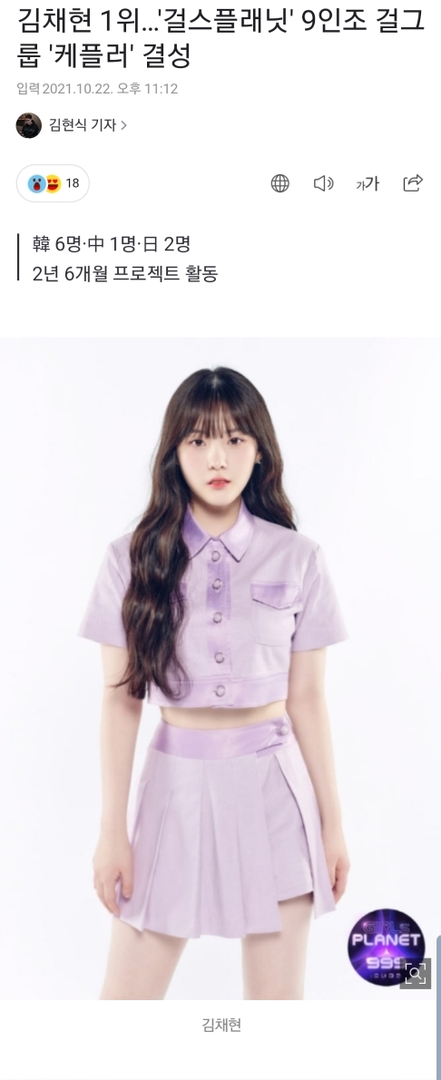 [연예]김채현 1위…'걸스플래닛' 9인조 걸그룹 '케플러' 결성 작성자mark 섹시 lee|작성시간21.10.22|조회수6,870 목록 댓글 59 글자크기 작게가 글자크기 크게가 https://n.news.naver.com/entertain/article/018/0005067225김채현 1위…'걸스플래닛' 9인조 걸그룹 '케플러' 결성김채현 휴닝바히에 최유진 [이데일리 스타in 김현식 기자] Mnet 걸그룹 오디션 프로그램 ‘걸스플래닛999 : 소녀대전’(이하 ‘걸스플래닛’) 데뷔 그룹 케플러(Kep1er) 멤버가 확정됐다. 22일 ‘걸스n.news.naver.com 다음검색 현재 게시글 추가 기능 열기 북마크 공유하기 신고 센터로 신고 댓글 댓글 59 댓글쓰기 답글쓰기 댓글 리스트 작성자케플러 김채현 | 작성시간 21.10.23 채현아 축하해💖 작성자hi_sseulgi | 작성시간 21.10.23 채현이 축하해💖 작성자라임바질앤만다린 | 작성시간 21.10.23 채현아❤️❤️❤️ 작성자kep1er 채현 | 작성시간 21.10.23 케플러 김채현...😭채현이 앞에 그룹명 붙는 순간을 같이 맞이해서 너무 행복하다...❤ 작성자nct 정재현 | 작성시간 21.10.23 채현아 축하해 🐰🤍 댓글 전체보기