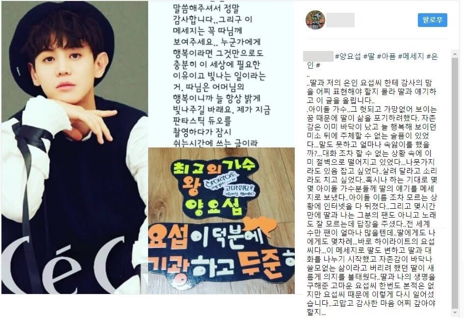 혹시나 하는 기대로 몇몇 아이돌 가수분들께 딸의 이야기를 메세지로 보냈다